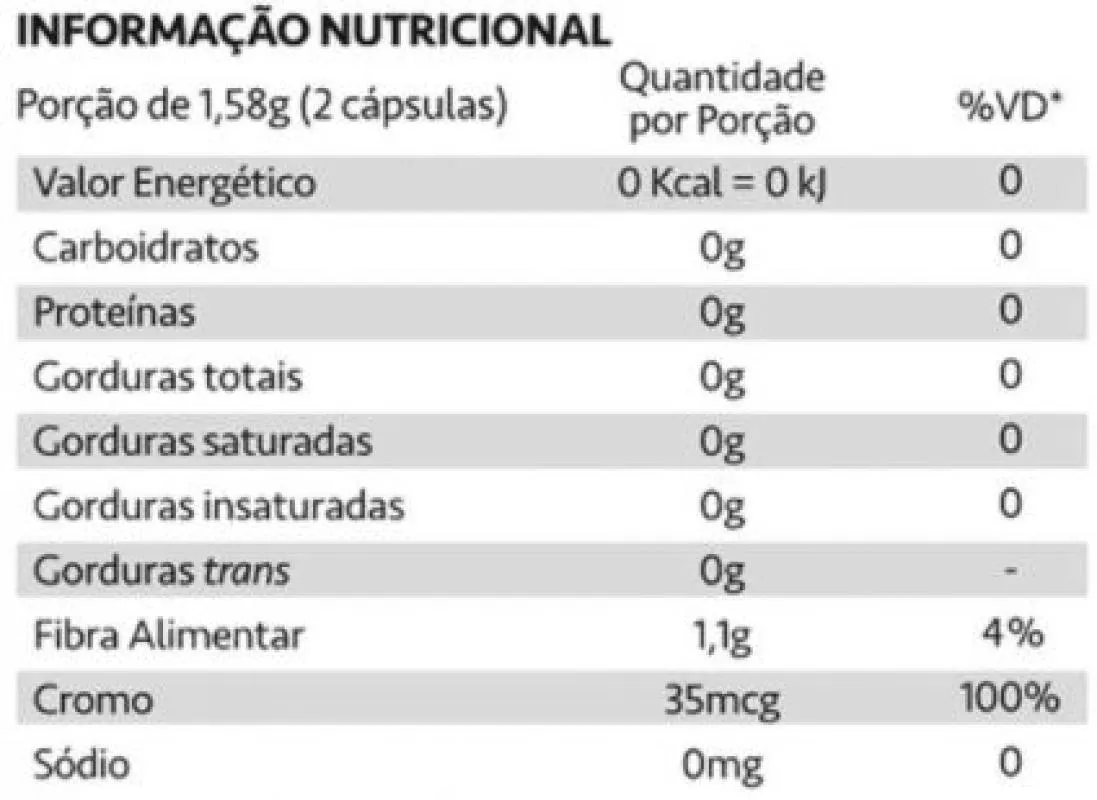 Finisim Cromo e fibras (60 caps) - Maxinuti O Finisim da Maxinutri é um suplemento em cápsulas formado com picolinato de cromo, ágar ágar, espirulina, berinjela e psyllium. Esta combinação de ingredientes fornece sensação de saciedade e diminuem a compulsão por doces, massas e outros alimentos muito calóricos. O picolinato de cromo é um mineral de alta absorção, melhora o efeito da insulina e otimiza o uso da glicose, auxilia no aumento da massa muscular e diminui a gordura corporal, além de aumentar a saciedade e reduzir a vontade de comer massas e doces. O agar agar é rico em fibras que absorvem até 3 vezes seu volume em água formando um gel no estômago dando assim sensação de saciedade sem prejudicar o organismo, também forma um complexo com o amido (carboidratos) da alimentação, diminuindo sua digestão e as calorias das refeições. A espirulina é uma alga rica em proteínas e minerais que atua como redutora do apetite, do colesterol e triglicerídeos além de ação desintoxicante. Também retarda o envelhecimento celular, possui efeito antioxidante e ajuda a recuperar a energia, vitalidade e boa forma. Psyllium, excelente fonte de fibras que em contato com líquidos, forma uma massa gelatinosa que “limpa” o intestino melhorando o trânsito intestinal e reduzindo os riscos de prisão de ventre. O Finisim é um suplemento que contribui para a perda de peso, pois também diminui a absorção de gordura pelo organismo, funcionando como uma “esponja” e transformando essa gordura em fonte de energia. Benefícios: - Auxilia no aumento da massa muscular; - Auxilia na diminuição da gordura corporal; - Aumenta a saciedade; - Possui efeito antioxidante; - Atua na manutenção do metabolismo; - Promove o emagrecimento.