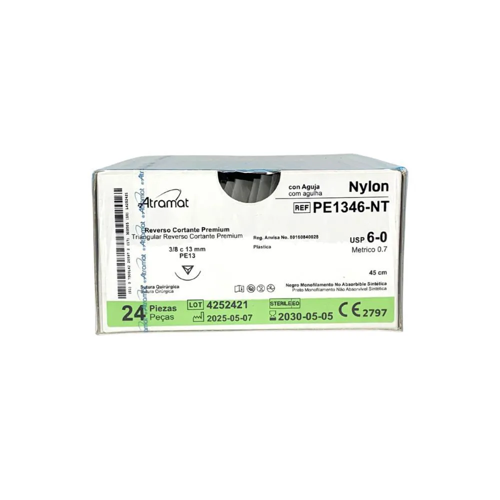Fio de Sutura Nylon Preto 6-0 Ag Triangular 3/8 13mm - PE1346-NT - Atramat