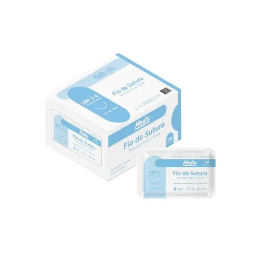Fio de Sutura Seda 3-0 45Cm C/Ag 17Mm 3/8 Triangular Caixa com 24 Unidades Medix