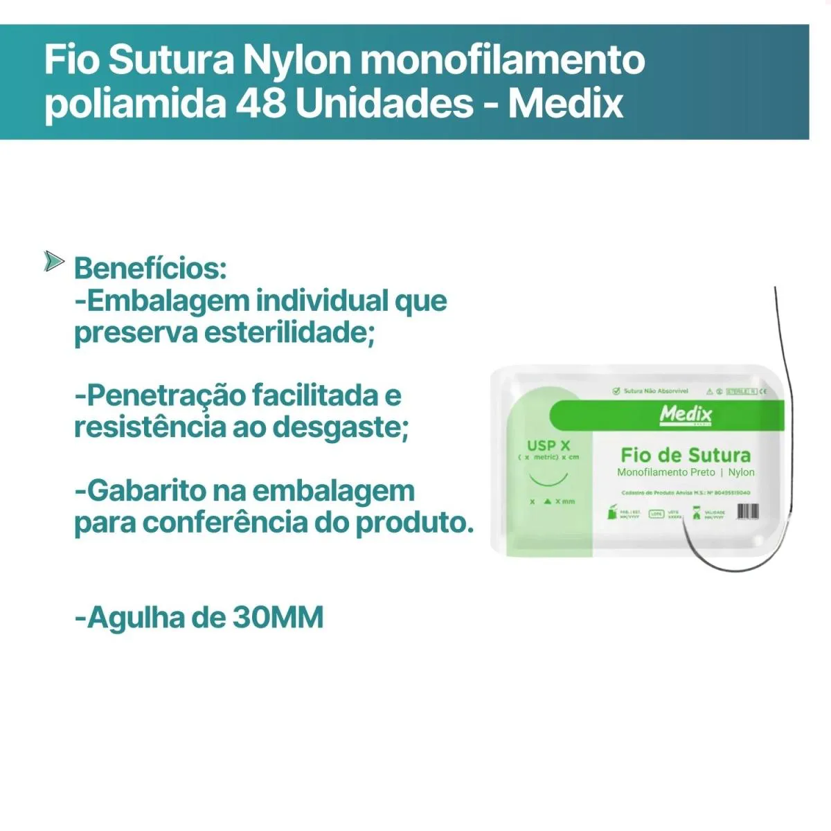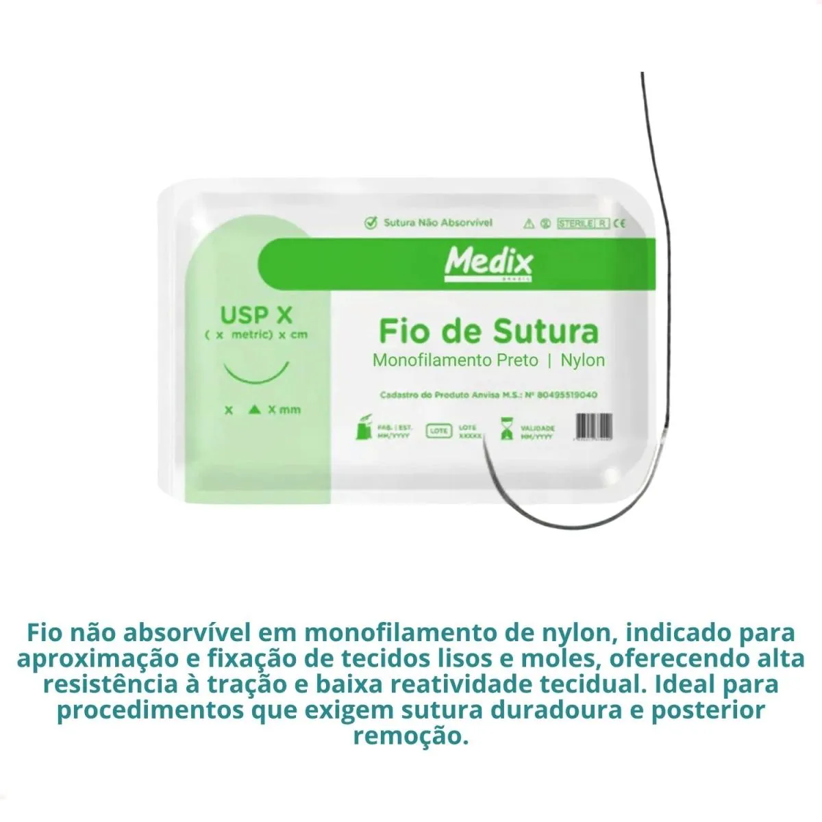 Fio de Sutura de Nylon Medix (Monofilamento de Poliamida) Não absorvível