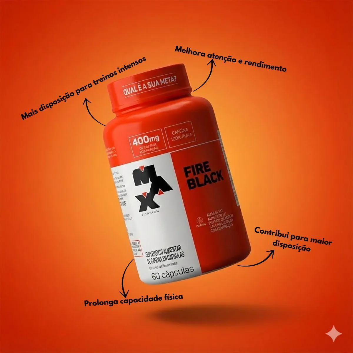 FIRE BLACK 60 CAPS TERMOGÊNICO DESEMPENHO E RESISTÊNCIA MAX TITANIUM