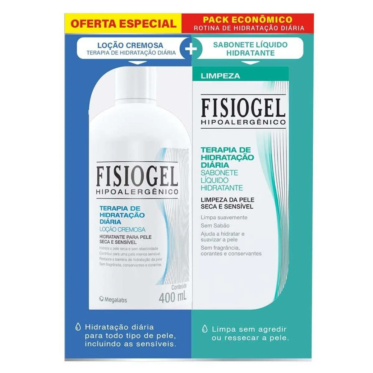 Kit Fisiogel Terapia de Hidratação Diária Loção Cremosa com 400ml + Sabonete Líquido com 150ml