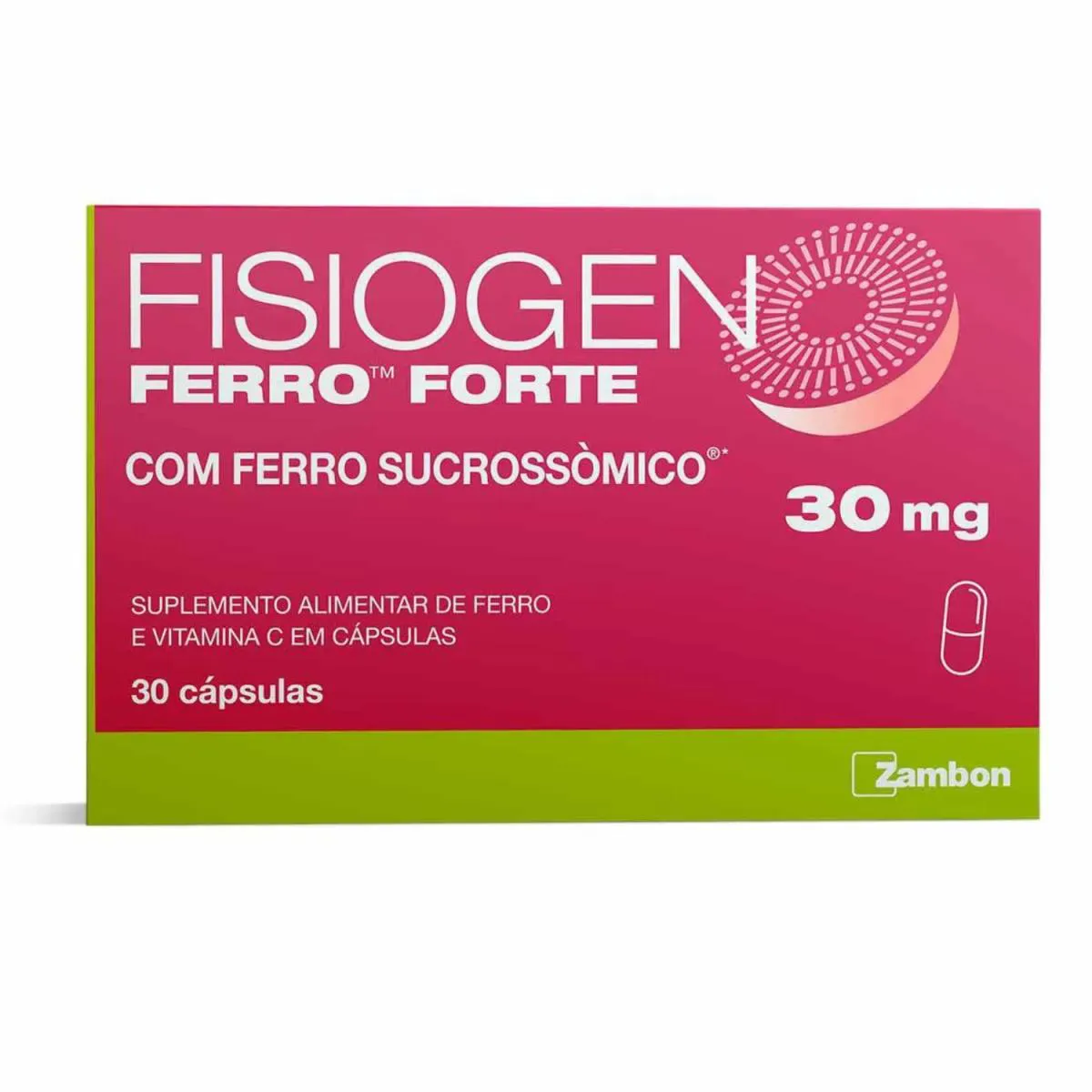 Fisiogen Ferro Forte é um suplemento alimentar de ferro com pirofosfato férrico em Sucrossoma e vitamina c, para utilização na complementação da dieta diária em casos onde a ingestão de ferro, a partir da alimentação, seja insuficiente, ou quando a dieta requerer suplementação adicional.