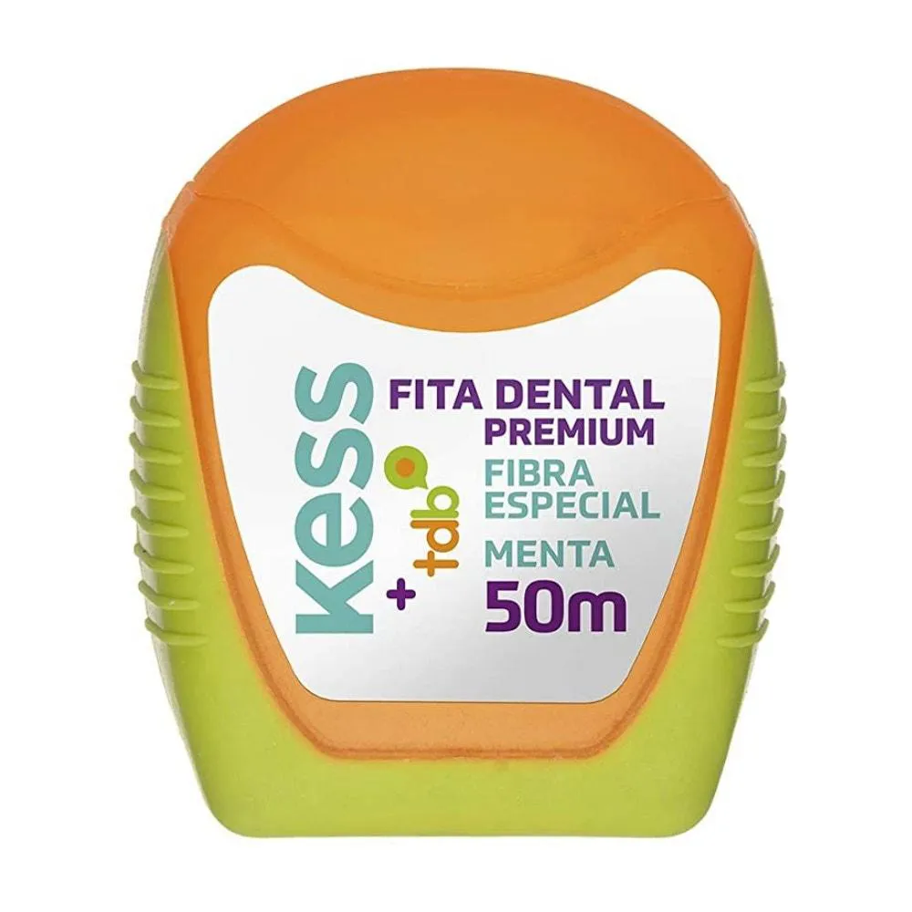 Fita Dental Premium Kess é feita de PTFE, uma fibra especial de filamento único e resistente que não desfia, nem agride a gengiva! Sabor menta. Modo de Usar: