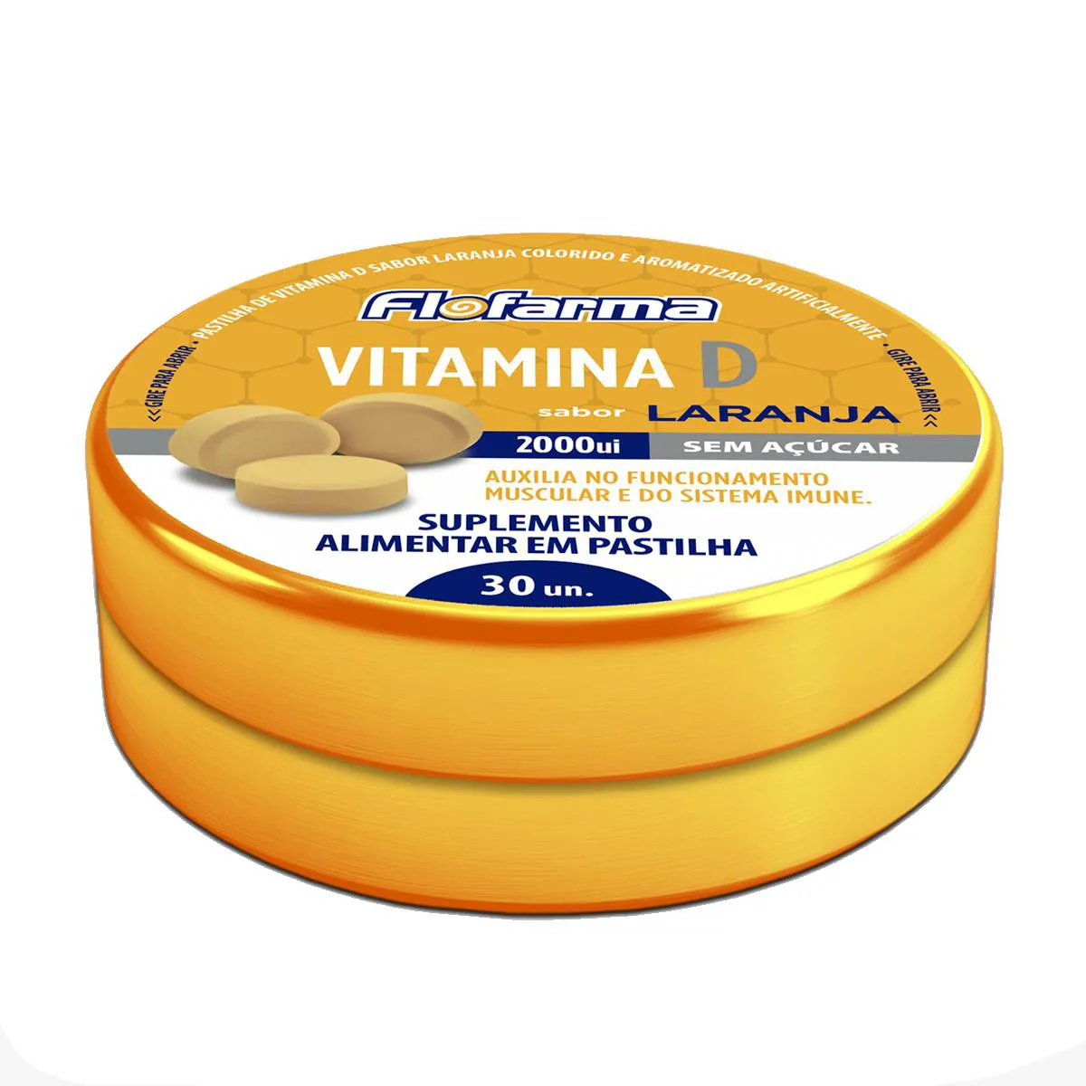 Pastilha de Vitamina D Flofarma Sem Açúcar Laranja 30 Unidades