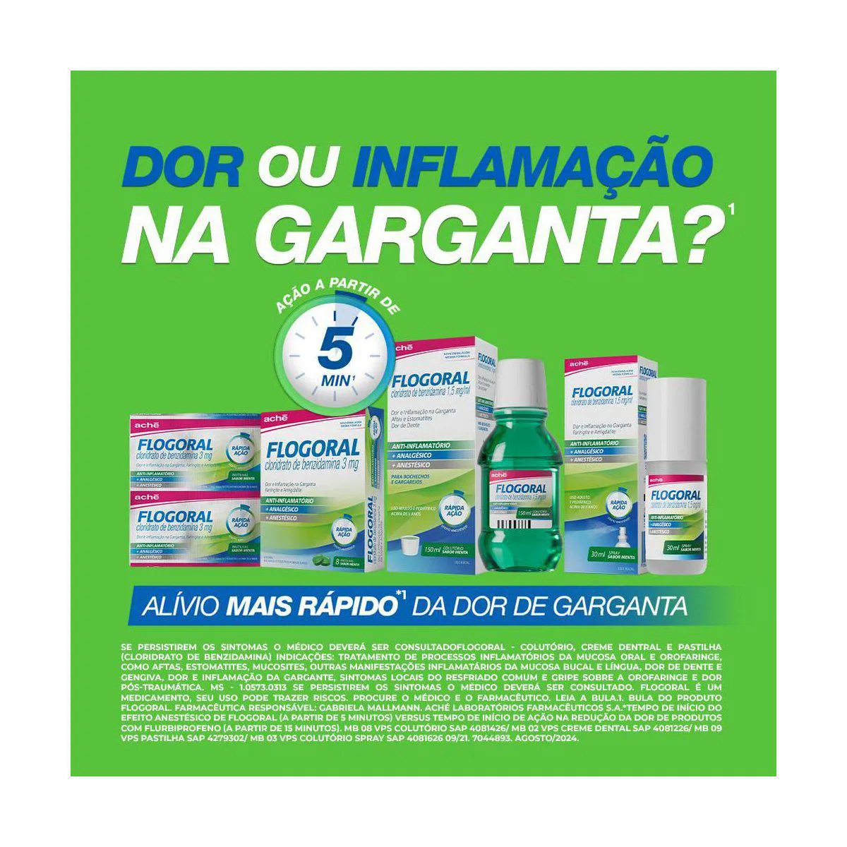Flogoral é um spray indicado para o tratamento de processos inflamatórios e dolorosos da boca e garganta. Sua fórmula apresenta propriedades anti-inflamatória, antisséptica, analgésica e anestésica, auxiliando em diversos tratamentos, como: