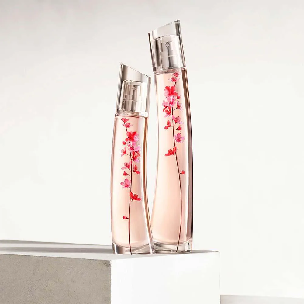 Estas extraordinárias matérias-primas criam um Eau de Parfum composto por 90% de ingredientes de origem natural. A caixa é inspirada no kakemono japonês e a última flor japonesa surge ao longo do vidro da garrafa: Sakura.