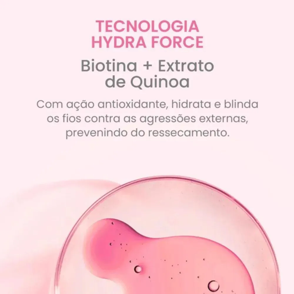 - Fortalece a fibra capilar, reduzindo a quebra dos fios em até 70%.