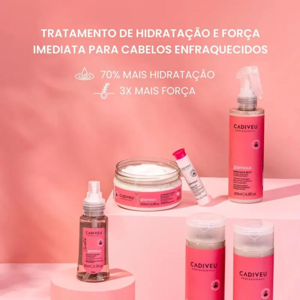 O Fluido Precioso Cadiveu Glamour é um leave-in ultra leve em spray, formulado com biotina, micropartículas de rubi, proteína de trigo e pantenol, desenvolvido para cuidado capilar. Serve para fortalecer a fibra capilar, reduzir a quebra dos fios, proporcionar proteção térmica, controlar o frizz e adicionar brilho refinado e sedoso aos cabelos. É indicado para todos os tipos de cabelo, especialmente para fios frágeis, desidratados, porosos ou que sofrem frequentemente com escovação e uso de calor.