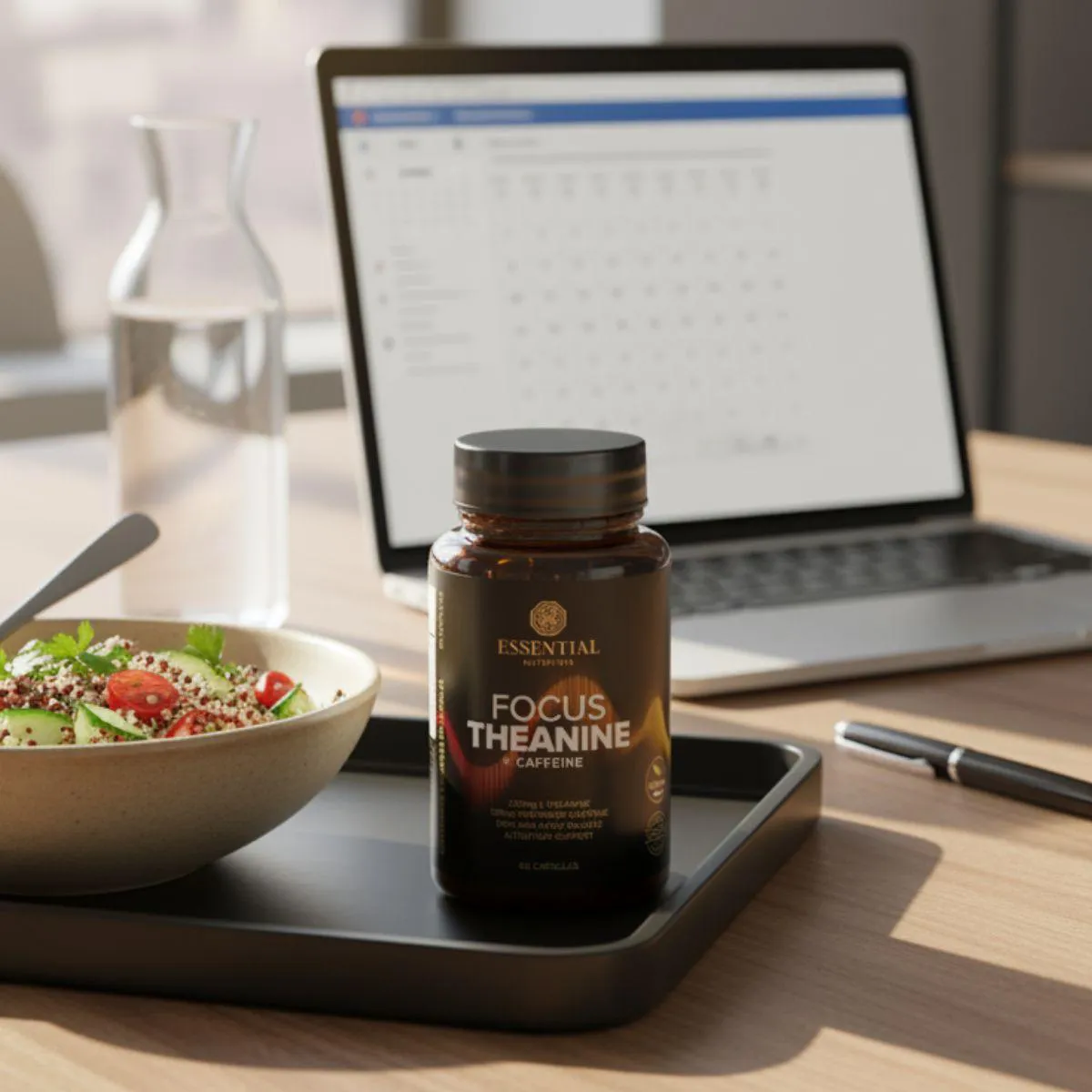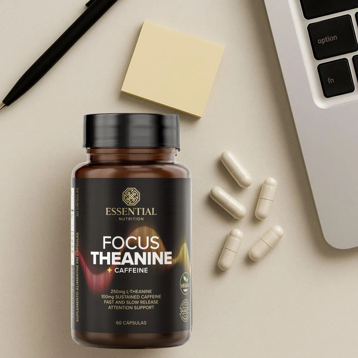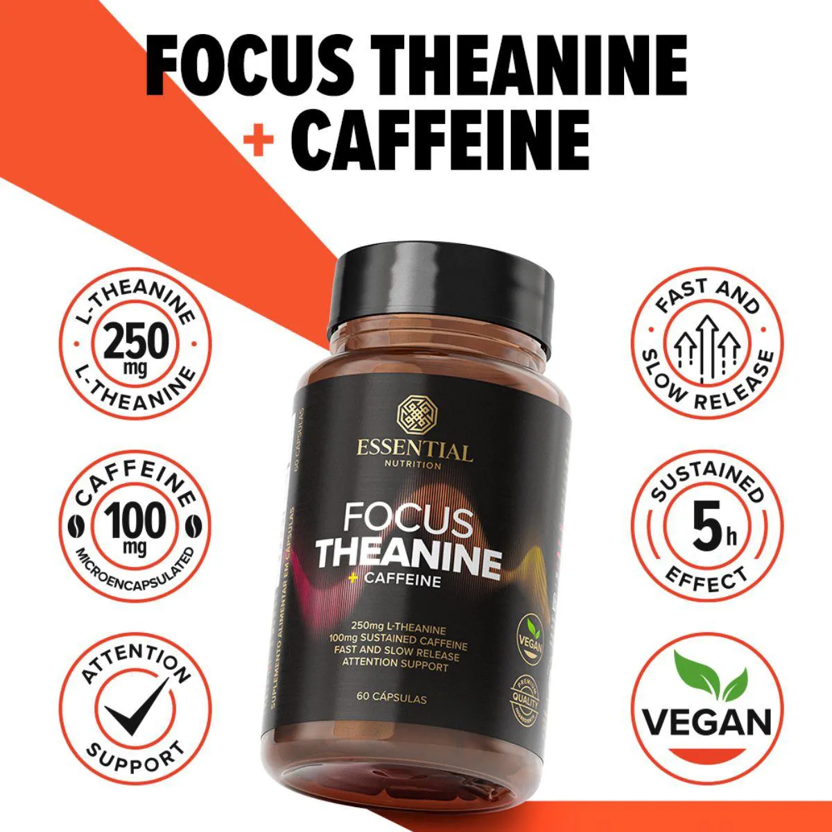 O que é e para que serve o Focus Theanine + Caffeine Vegan 60 Capsulas Essential Natural?