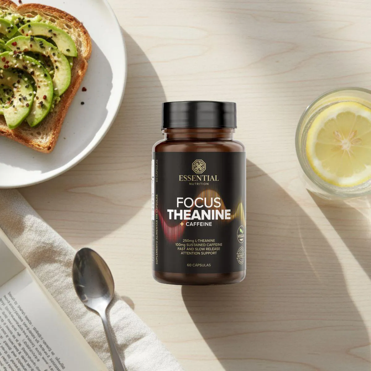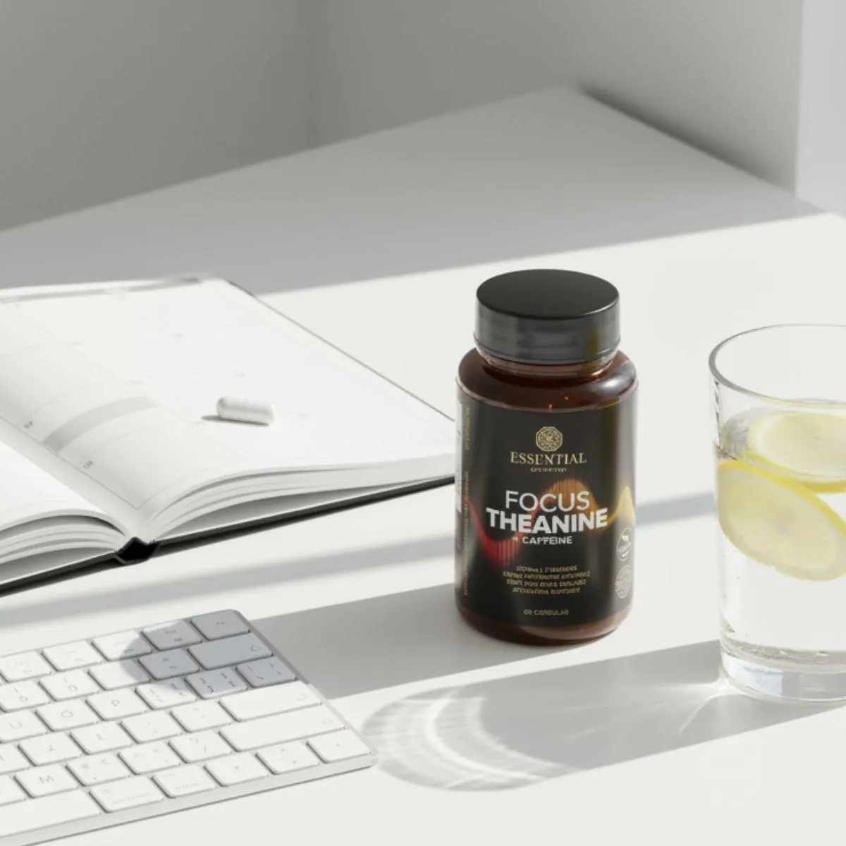O Focus Theanine + Caffeine é um suplemento nutricional vegano composto por 60 cápsulas, formulado com L-teanina e cafeína de fontes naturais, sem adição de açúcares, corantes ou conservantes artificiais. É um produto livre de glúten e ingredientes de origem animal, desenvolvido pela Essential Nutrition para oferecer suporte nutricional direcionado.