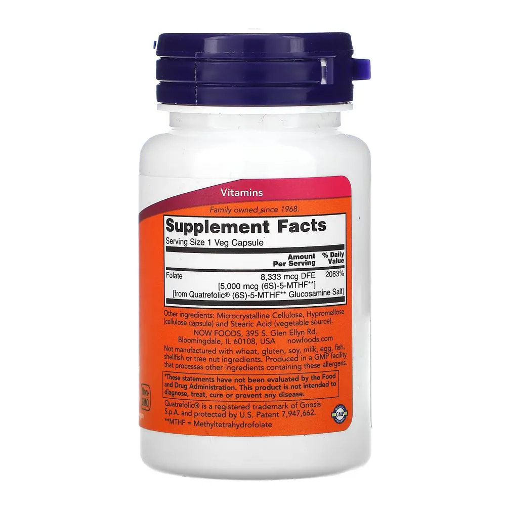 Folato de Methyl 5000mcg Now Foods 50 Cápsulas Importado