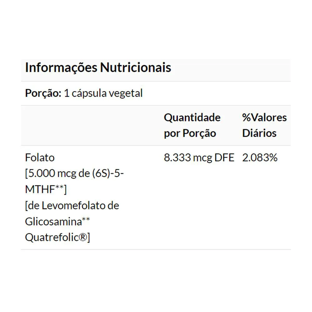 - Suporte nutricional de alta potência com 5000mcg de folato por cápsula.