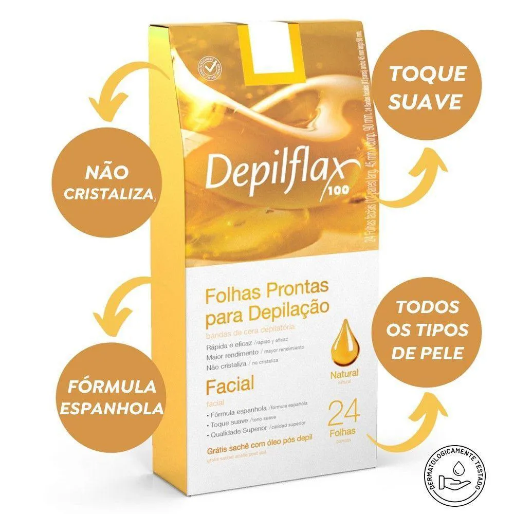 Folhas Prontas Para depilação Facial Buço Sobrancelha Depilflax Natural 24un