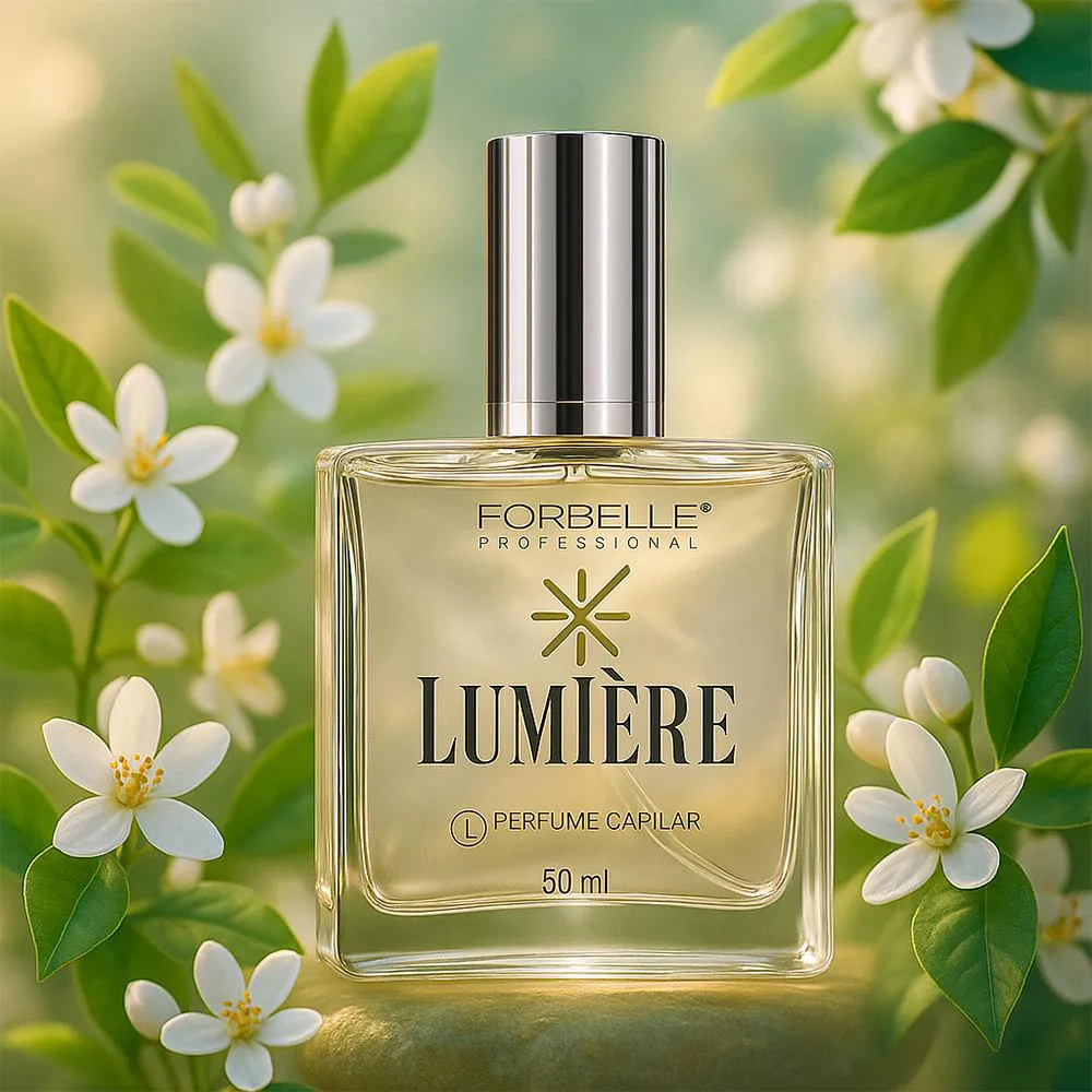 O Forbelle Professional Lumière Perfume Capilar 50ml combina uma fragrância floral frutal sofisticada com cuidados capilares avançados. Com notas de mandarina, jasmim e baunilha, oferece cabelos perfumados, protegidos e brilhantes, ideal para quem busca elegância e praticidade no dia a dia ou em ocasiões especiais.