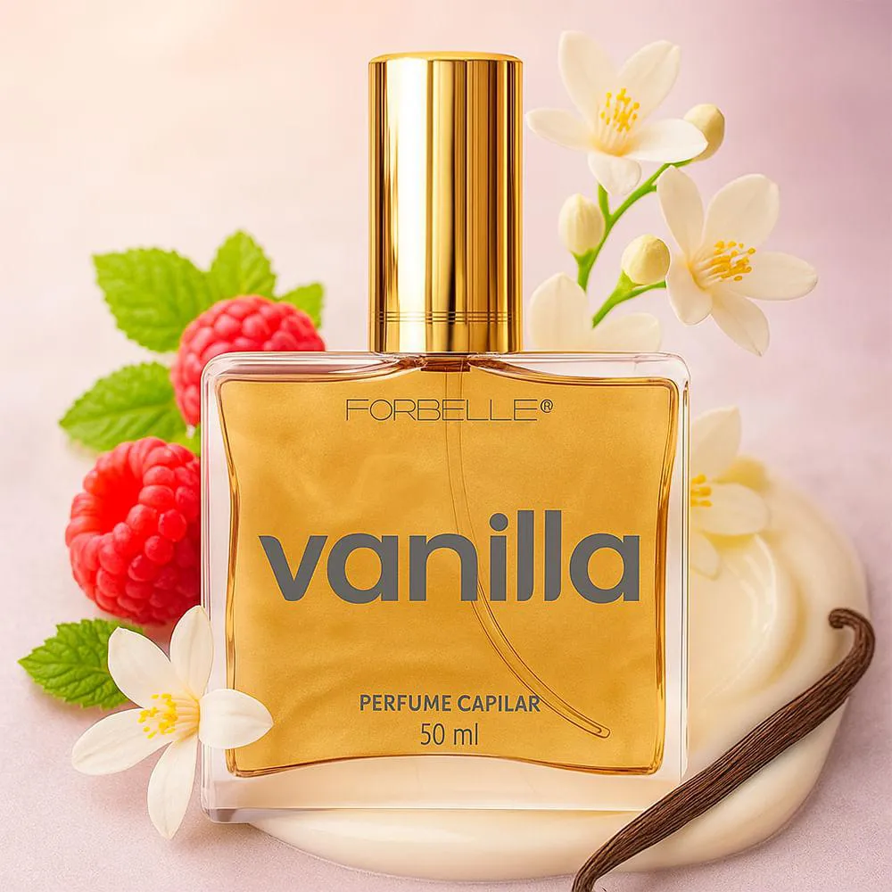 O Forbelle Professional Vanilla Perfume Capilar 50ml combina uma fragrância oriental gourmand rica e doce com cuidados capilares avançados. Com notas de baunilha, jasmim e caramelo, oferece cabelos perfumados, protegidos e brilhantes, ideal para quem busca sofisticação e conforto no dia a dia ou em ocasiões especiais.