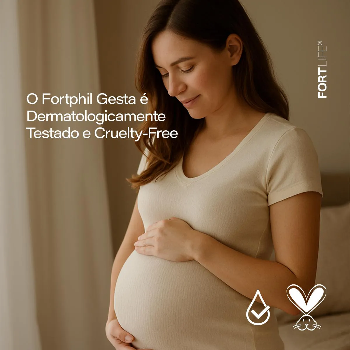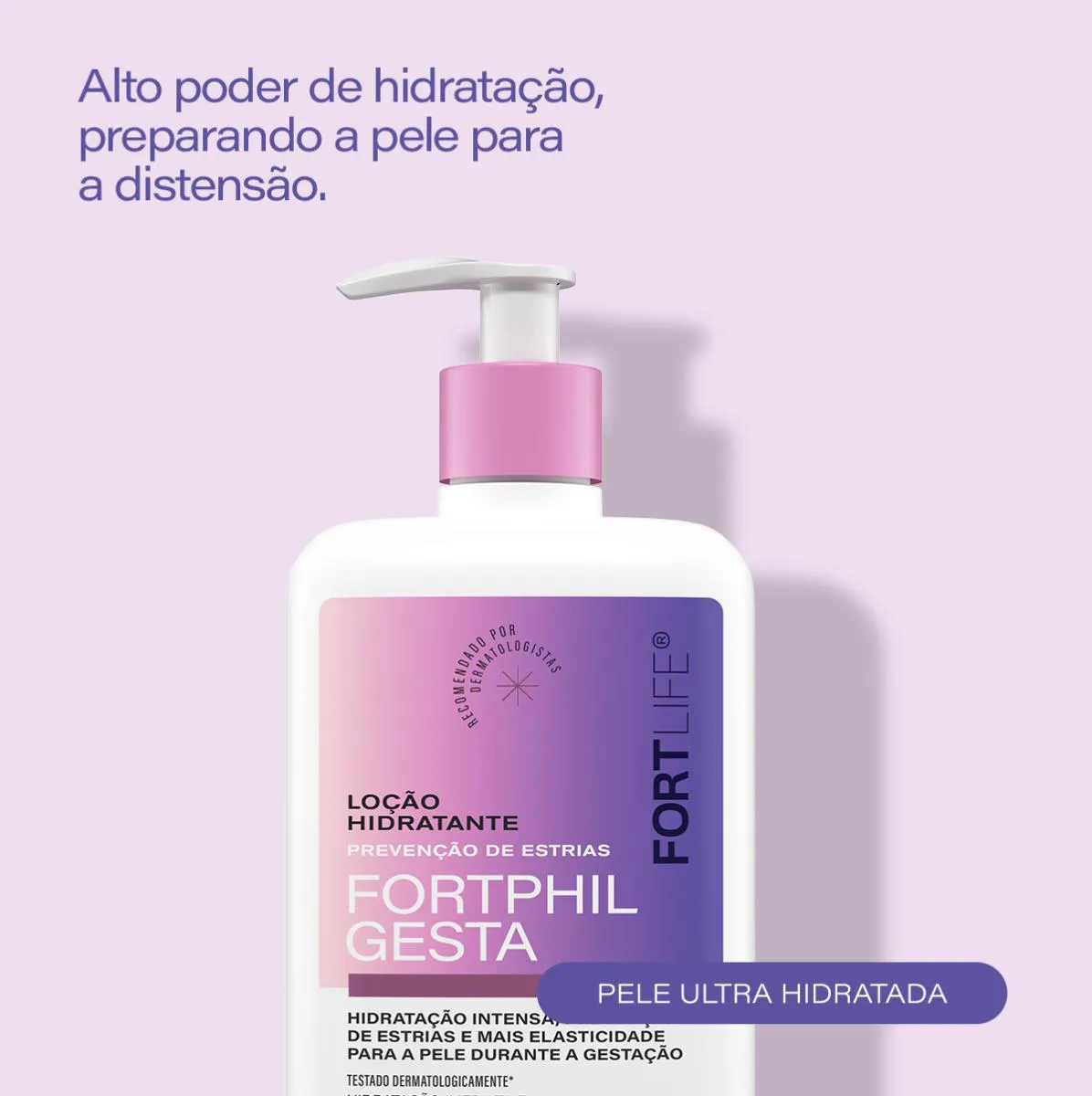 FortPhil Gesta Loção Hidratante 473ml - O Cuidado que Acompanha Sua Gestação Você está vivendo um dos momentos mais especiais da sua vida, e sua pele merece um cuidado à altura. O FortPhil Gesta, da FORTLIFE, é a loção hidratante desenvolvida especialmente para gestantes que desejam hidratação intensa, elasticidade e prevenção contra estrias durante toda a gestação. Quantas vezes você ouviu que estrias na gravidez são inevitáveis?