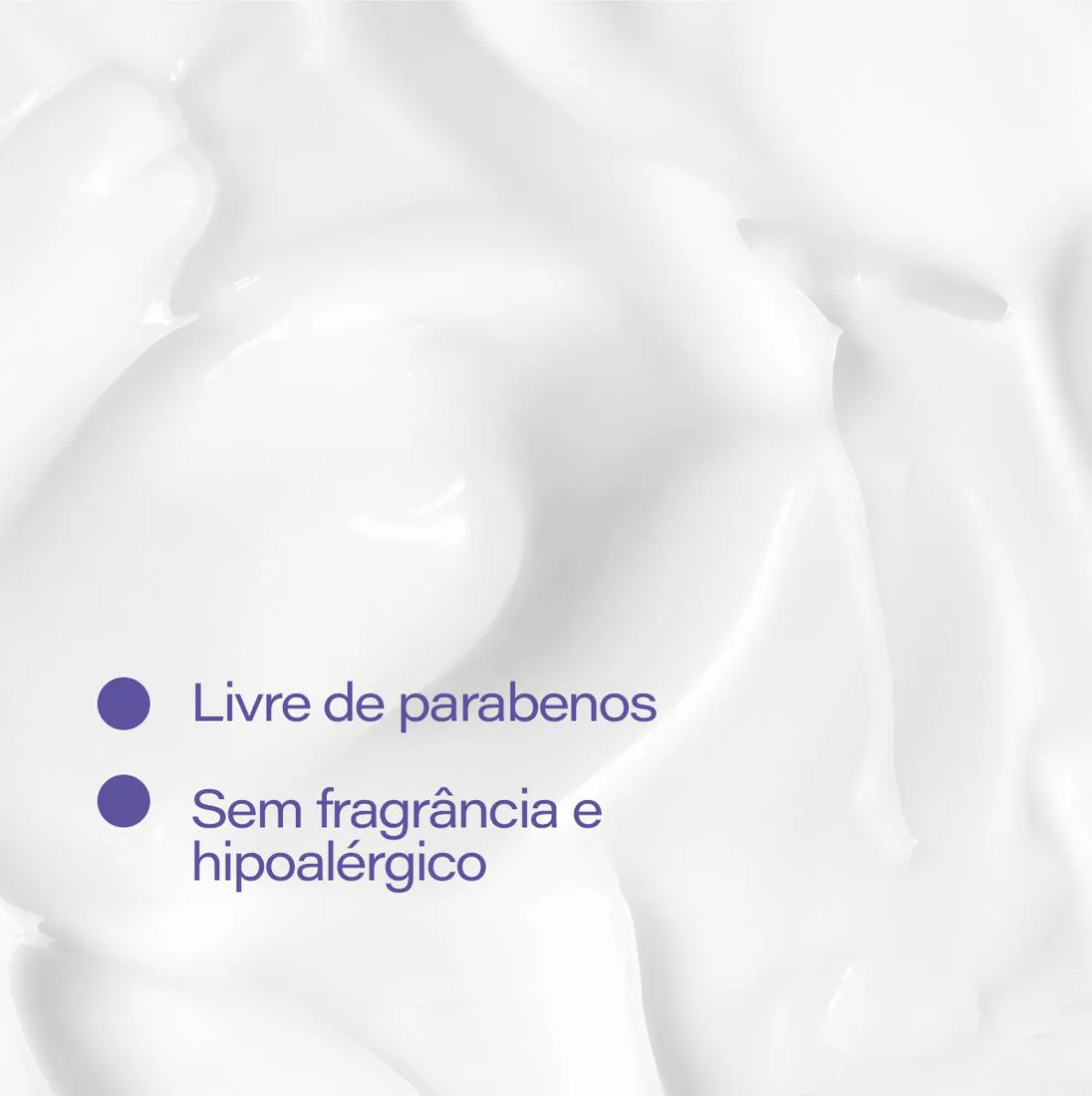 - Sem fragrância, sem parabenos e sem corantes: ideal para peles sensíveis.