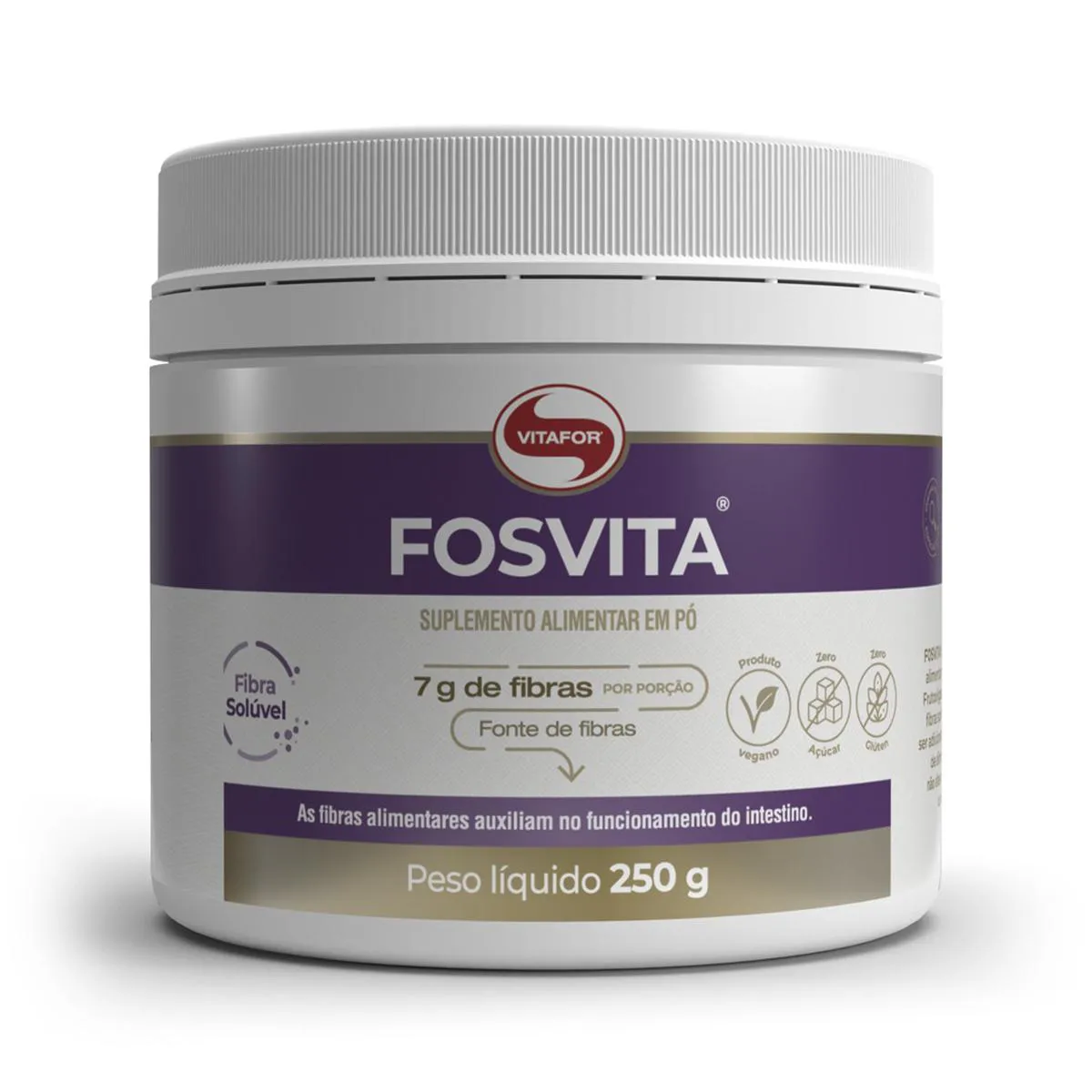 Fosvita Vitafor fibras Alimentares 250g FOSVITA é um suplemento alimentar à base de Frutooligossacarídeos (FOS), fibra solúvel que pode ser adicionado a qualquer tipo de alimento ou bebida, não alterando sua textura, cor ou sabor. Diferenciais: - Pode ser adicionado a qualquer tipo de alimento ou bebida, não alterando textura, cor ou sabor dos alimentos.