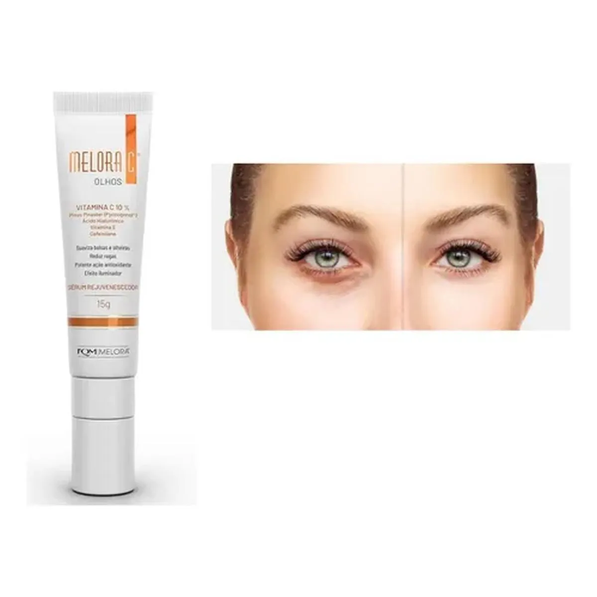FQM Melora C Sérum Rejuvenescedor Para Olhos – 15g Sérum de tratamento específico para a região dos olhos, formulado para reduzir sinais de envelhecimento, hidratar e iluminar. Sua combinação de vitamina c e ativos antioxidantes ajuda a suavizar linhas finas, melhorar a firmeza e revitalizar a aparência da pele ao redor dos olhos. Características: