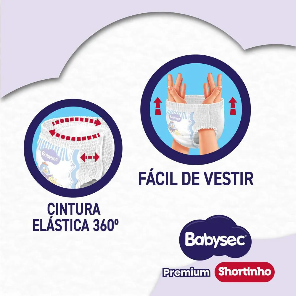 É uma fralda descartável infantil no tamanho XXXG, desenvolvida para bebês com mais de 19kg, com design de short que oferece máximo conforto e liberdade de movimentos. A fralda serve para proteger bebês durante o dia e a noite, absorvendo líquidos e evitando vazamentos, com sistema de elástico na cintura de 360 graus que garante ajuste perfeito e vedação eficiente.