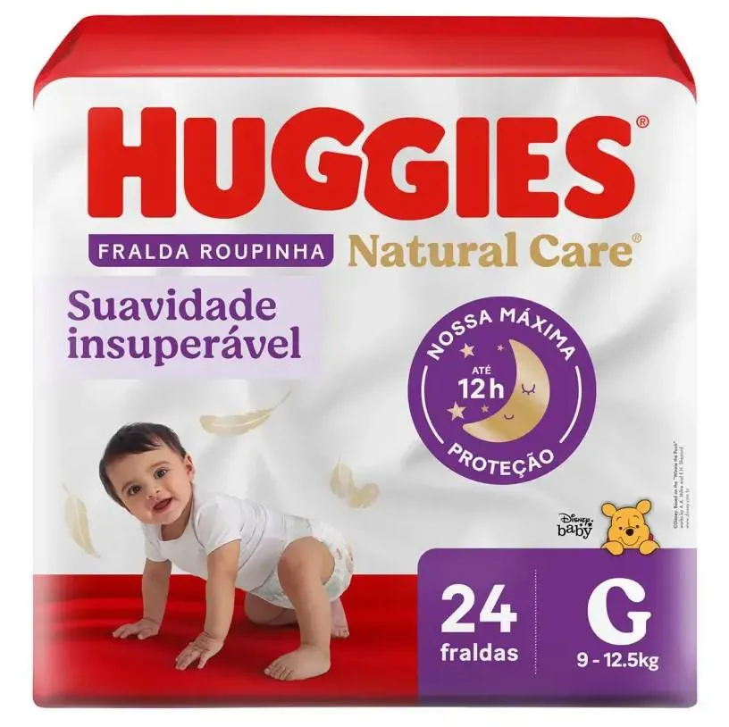Fralda Calça Huggies Natural Care Roupinha Disney Baby Mega G – 24 Unidades