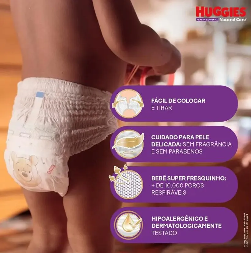 O que é e para que serve a Fralda Calça Huggies Natural Care Roupinha Disney Baby Mega G – 24 Unidades?
