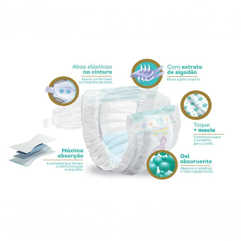 - Contém gel absorvente para manter o bebê seco.