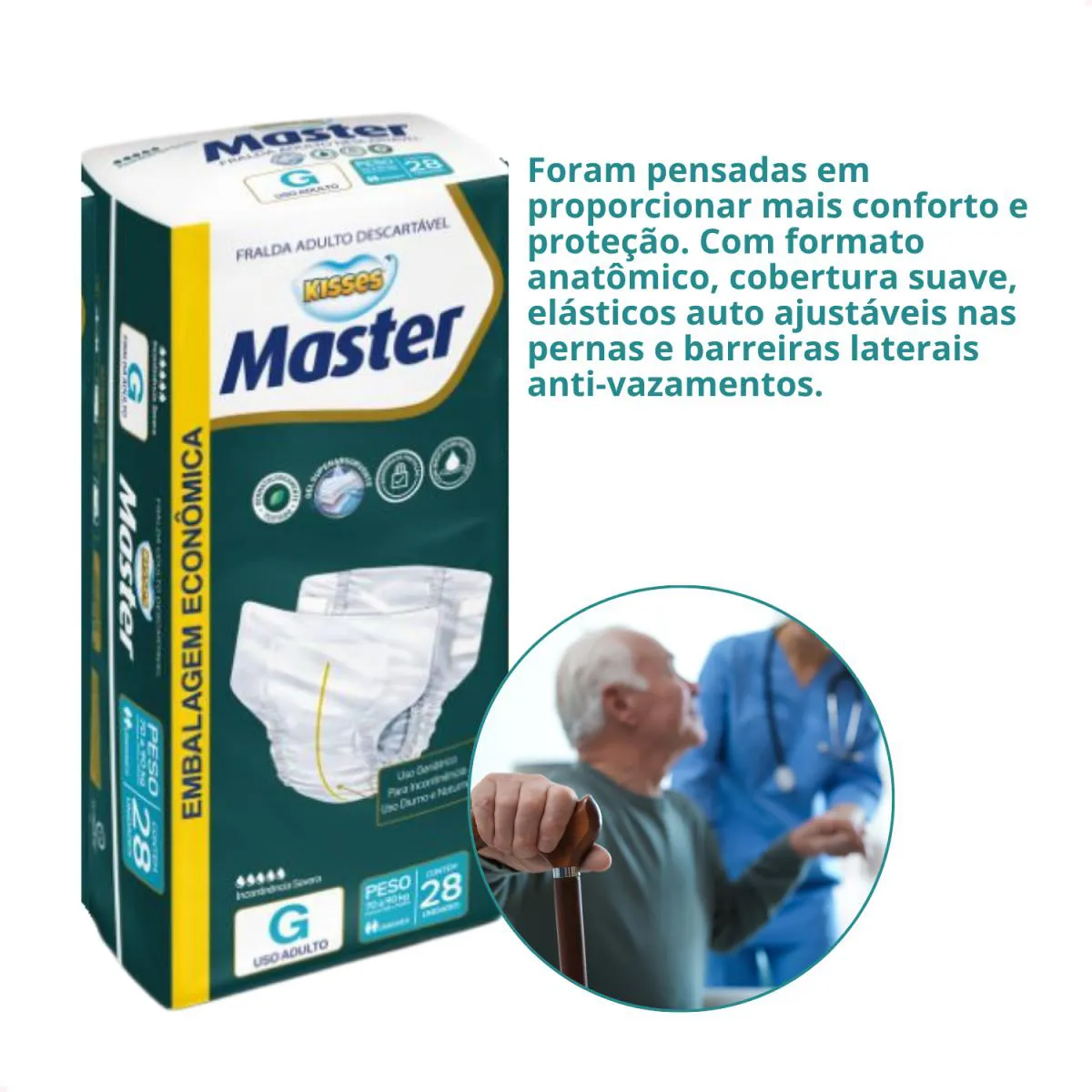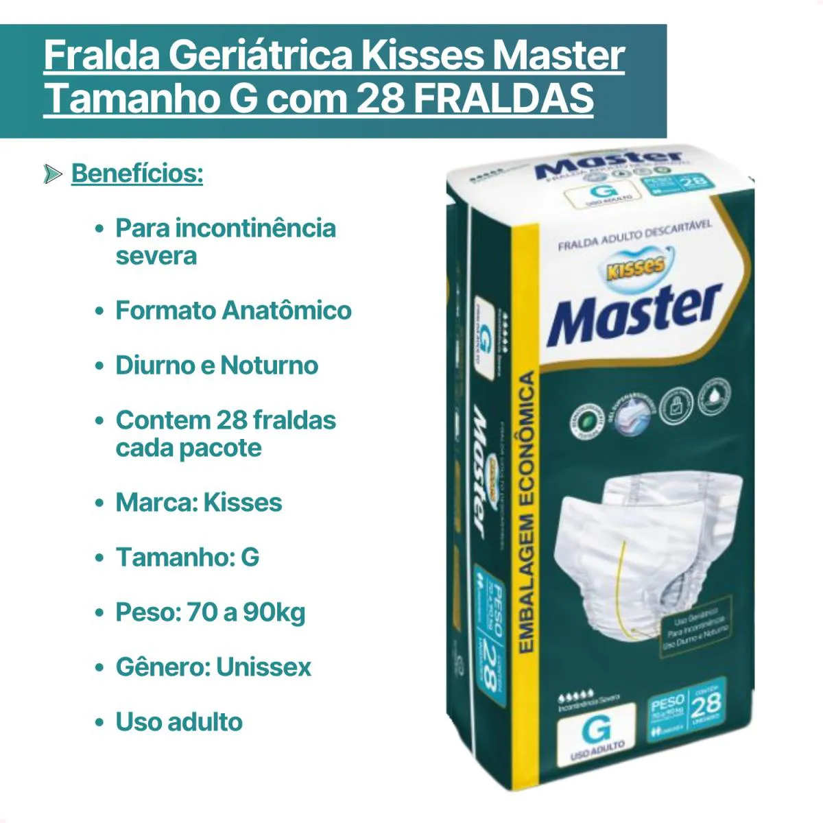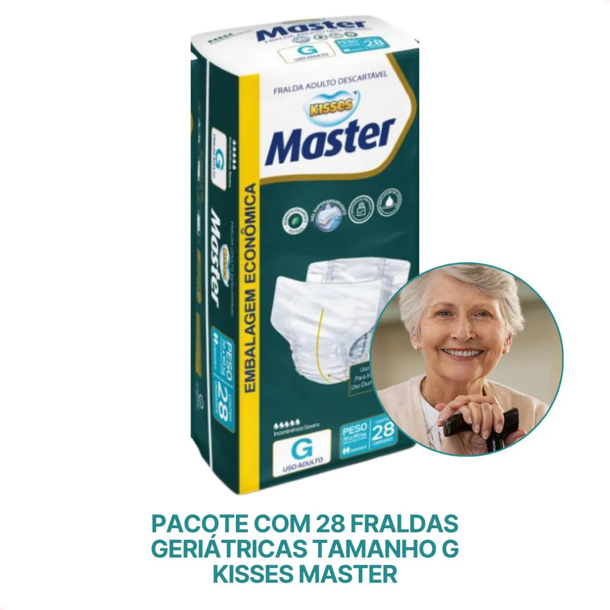Fralda Geriatrica KISSES Master Adulto Tamanho G Descartavel com 28 FRALDAS