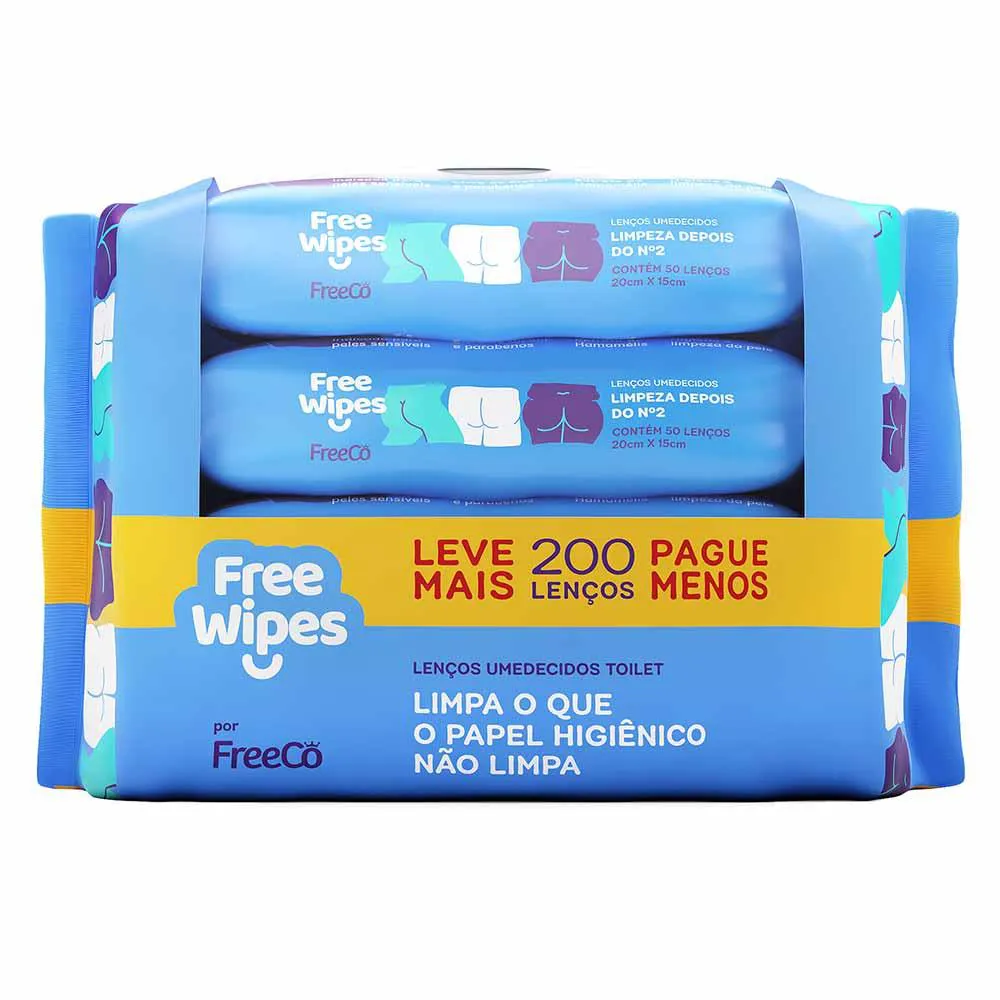 Free Wipes lenços umedecidos Toilet Kit com 4 Unidades