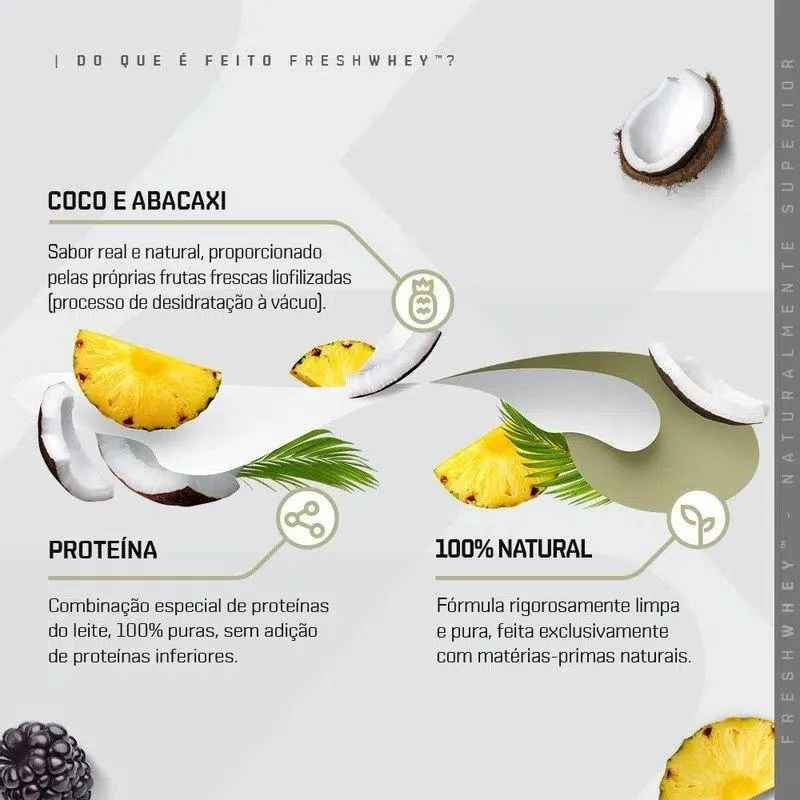 Fresh Whey Dux Sabor Abacaxi e Coco - Sachê 29g: Uma Explosão Tropical de Sabor e Nutrição Descrição do Produto: O Fresh Whey Dux com sabor de Abacaxi e Coco em sachê de 29g é uma opção refrescante e deliciosa para aqueles que buscam uma fonte de proteína de qualidade com um toque tropical. Desenvolvido pela Dux, esse suplemento oferece não apenas nutrição premium, mas também uma experiência sensorial única. Principais Características:
