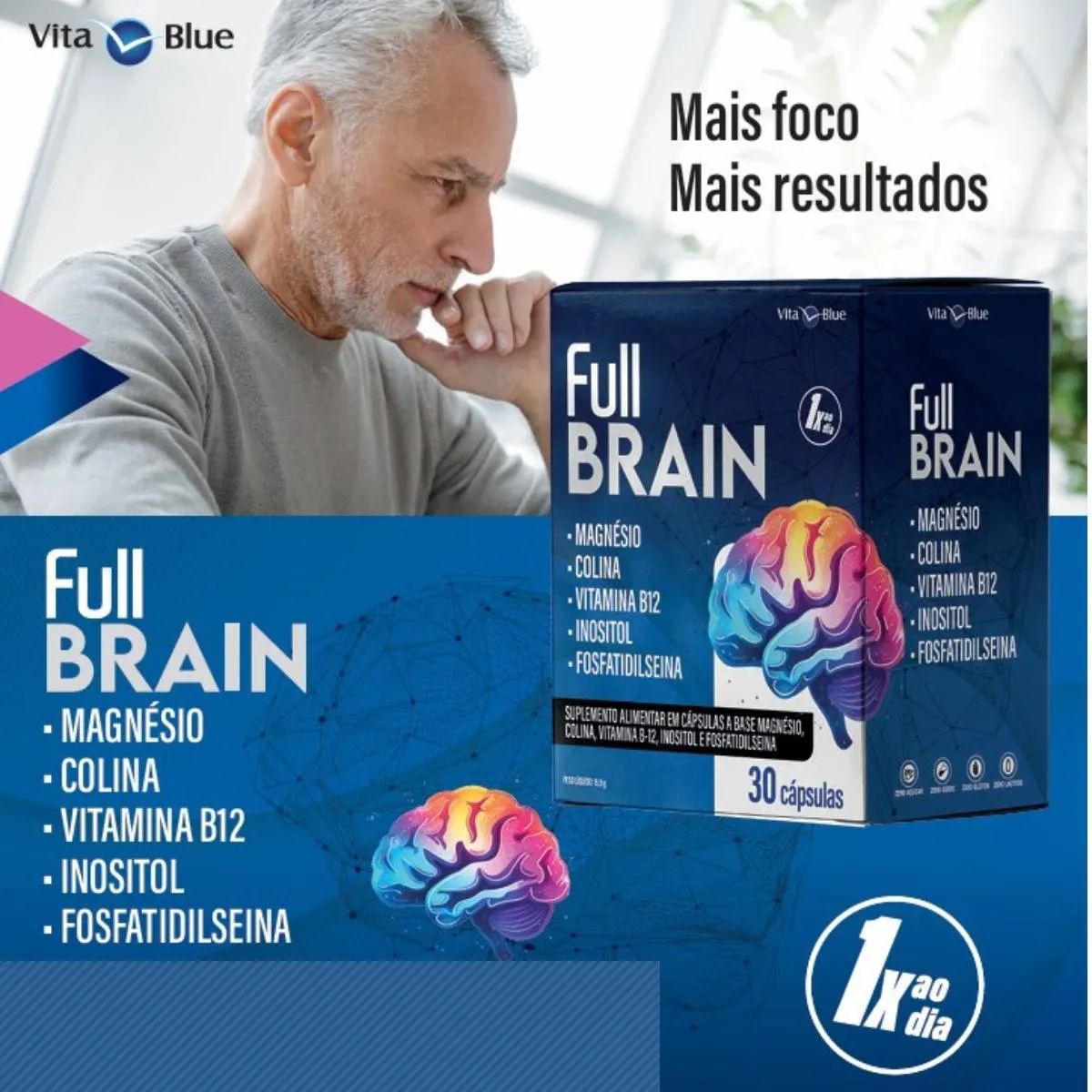 Para a otimização cerebral, o Full Brain Vita Blue oferece suporte essencial ao foco, à memória e à cognição.O Full Brain Vita Blue é um suplemento alimentar desenvolvido para apoiar e potencializar o desempenho cognitivo. Formulado para nutrir o cérebro, ele contribui para a melhoria da memória, do foco e da concentração, sendo ideal para estudantes, profissionais e qualquer pessoa que busque manter a saúde cerebral e a vitalidade mental no dia a dia. Com uma composição pensada para o bem-estar geral, cada cápsula é um passo para uma mente mais ágil e produtiva.