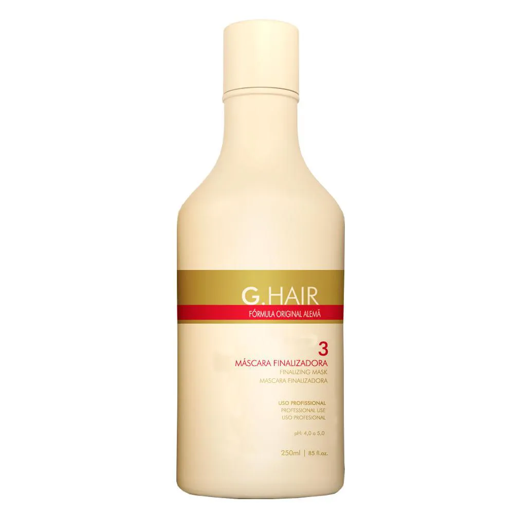 A G.Hair Máscara Finalizadora é um produto de tratamento capilar que encerra o processo de alisamento progressivo, com ação fortalecedora especial para cabelos tratados quimicamente. Sua função é proporcionar hidratação profunda, fechar as cutículas, equilibrar o pH dos fios e neutralizar resíduos de alcalinidade, resultando em cabelos lisos, macios, brilhantes e mais resistentes.