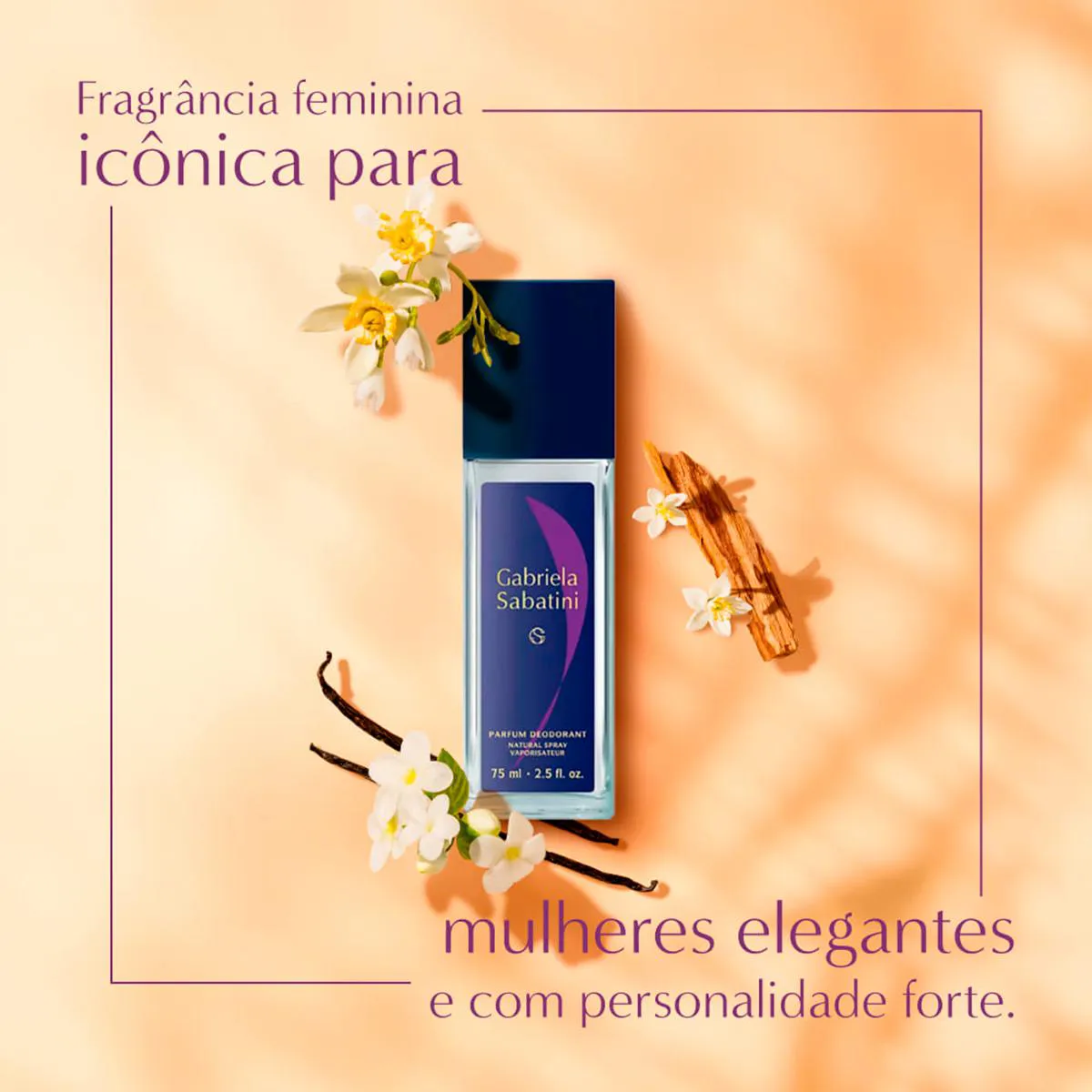 O Body Splash Gabriela Sabatini é uma fragrância feminina floral ambarada, criada para mulheres confiantes, autênticas e decididas. Inspirado na trajetória da campeã de tênis Gabriela Sabatini, o body splash expressa força, elegância e feminilidade em cada borrifada. Ideal para o uso diário, proporciona uma perfumação suave e duradoura, deixando a pele com um toque fresco e sofisticado.