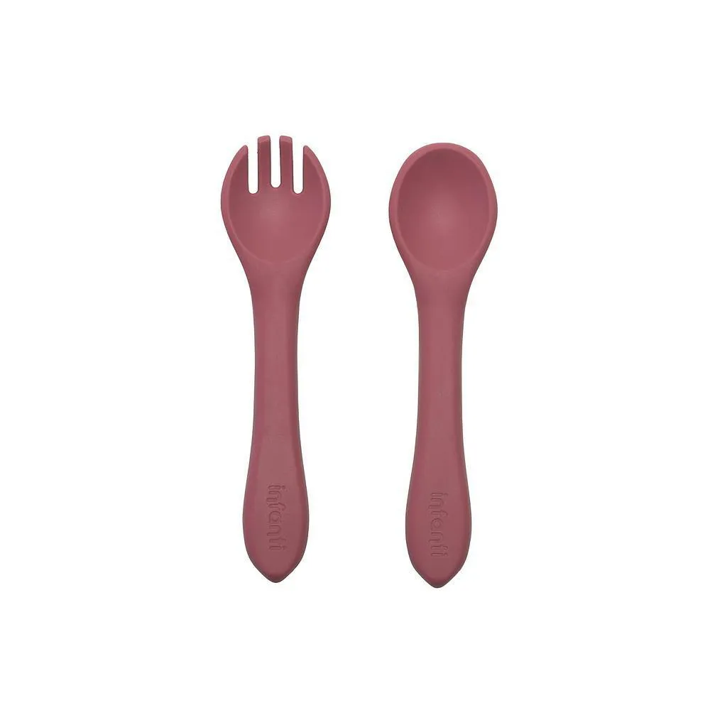 Garfo e Colher de Silicone Piccolo Rosa - Infanti