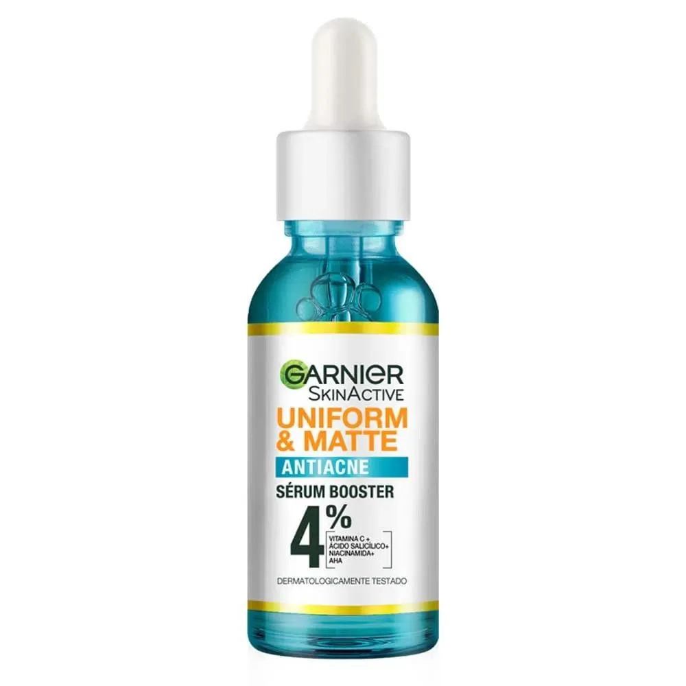 O novo Garnier Uniform & Matte Antiacne Sérum Booster é um sérum antiacne e antimarcas de uso diário.
