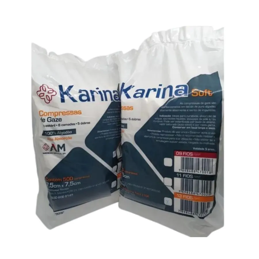 Gaze Não Esteril Pacote com 500 Unidades 7,5X7,5 13 Fios Karina Kit com 2 Pacotes