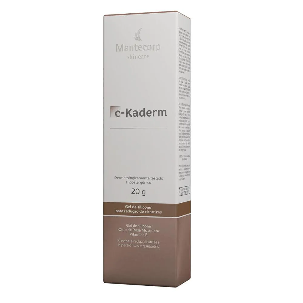C-Kaderm é um gel de silicone cicatrizante composto por óleo de rosa mosqueta e vitamina e, com indicação para prevenção e melhora de cicatrizes (hipertróficas e queloides). Este produto auxilia a regeneração e redução de cicatrizes, diminui o relevo e endurecimento da cicatriz, melhora a flexibilidade e tonalidade da cicatriz, além de promover o alívio da coceira.