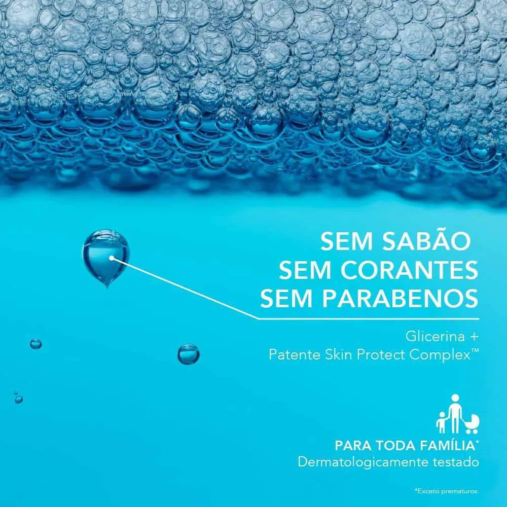 Formulado sem sabão, corantes ou parabenos. Perfume suave.