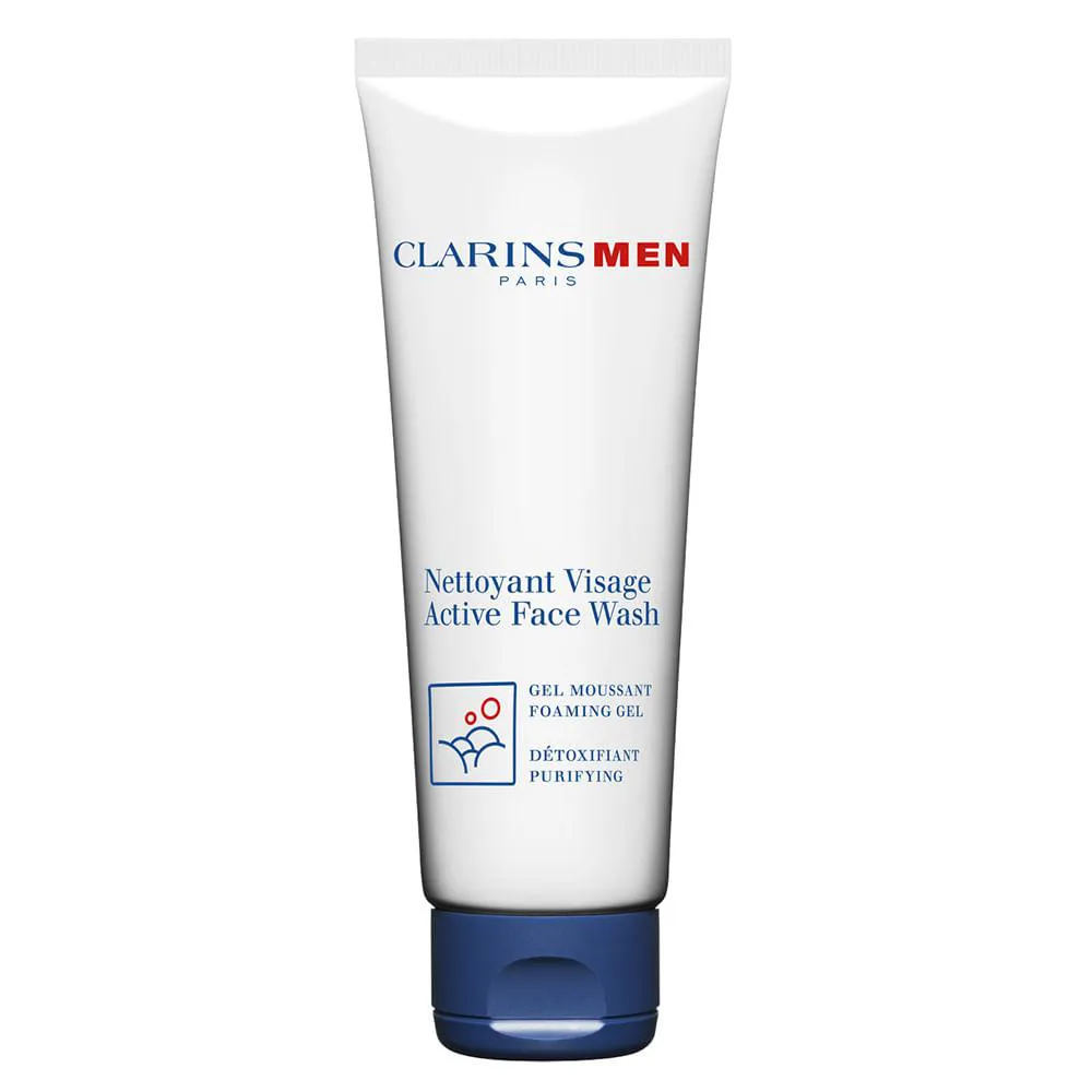 Ao serviço de uma pele perfeitamente limpa, o Active Face Wash de ClarinsMen é gel espuma suave com extratos purificantes de grindélia e de gaultéria que remove suavemente todas as impurezas e vestígios de poluição. O gel de limpeza suaviza o ardor do barbear, tonifica e cria um escudo para proteger a pele das agressões externas. O gel de limpeza para o rosto é tão suave que pode ser utilizado de manhã e à noite.