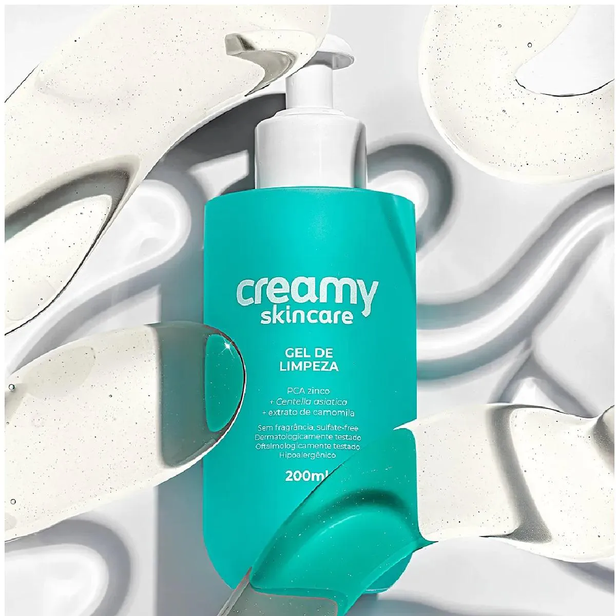Creamy Skincare Gel de Limpeza 200ml O Creamy Gel de Limpeza foi desenvolvido para promover uma limpeza eficaz e suave, removendo impurezas, oleosidade e resíduos sem ressecar a pele. Sua fórmula combina PCA de Zinco, Extrato de Camomila e Ácido Salicílico, que auxiliam no controle da oleosidade, acalmam irritações e ajudam na prevenção de cravos e espinhas. Ideal para o uso diário, o produto é livre de fragrância e sulfatos, sendo indicado para todos os tipos de pele, inclusive as sensíveis e oleosas. Benefícios: