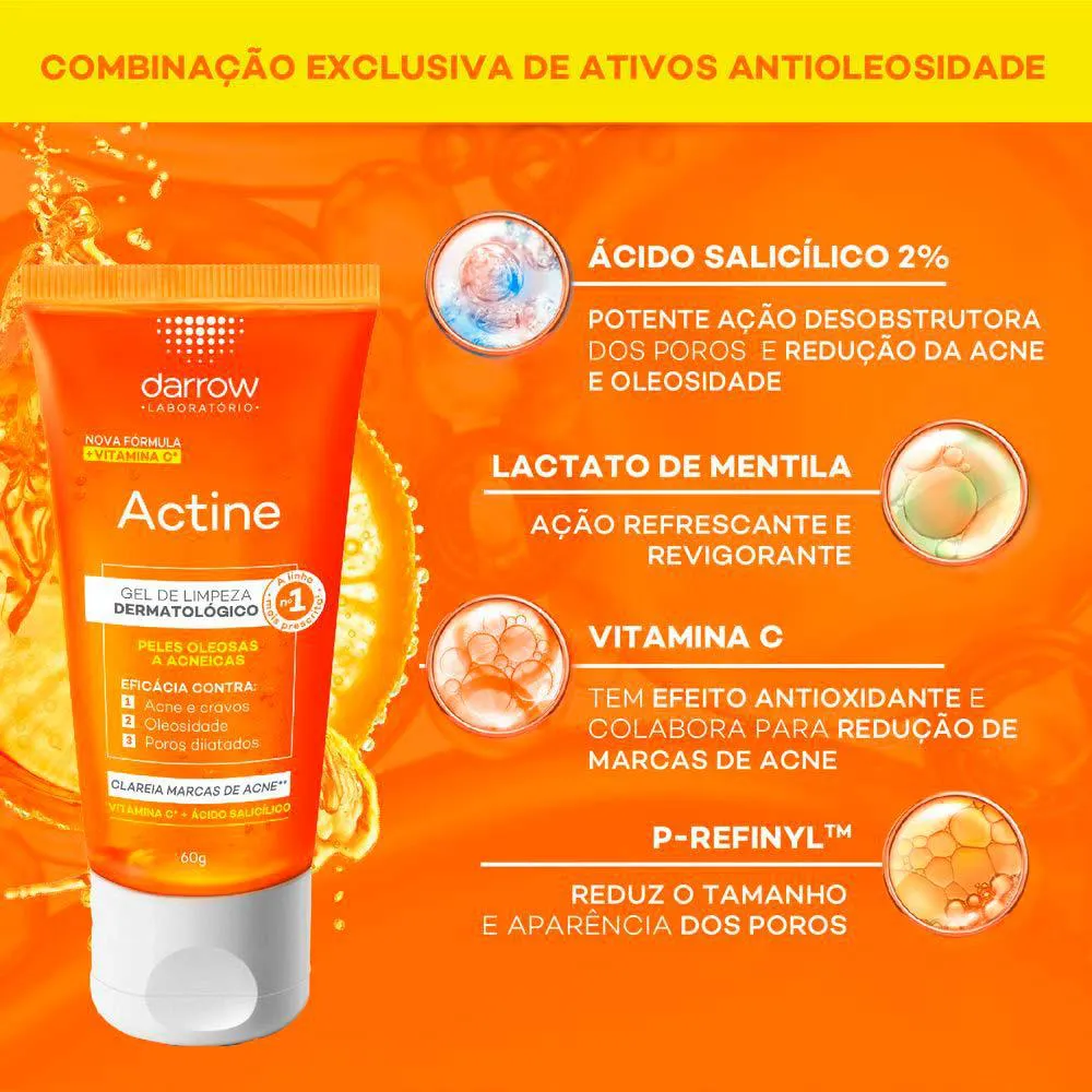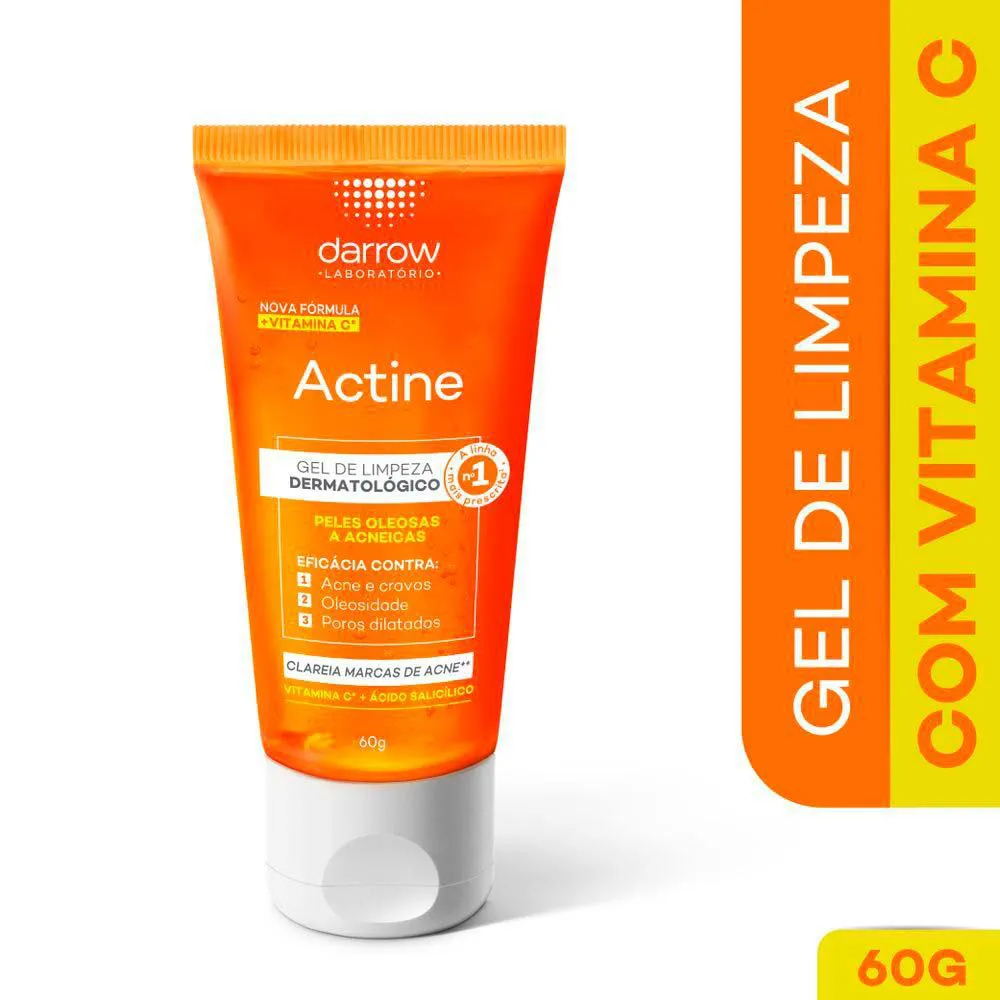 Darrow Actine Gel De Limpeza vitamina C combate a acne e a oleosidade, remove as impurezas e desobstrui os poros.