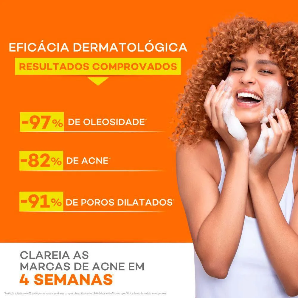 Reduz 86% da acne e 97% oleosidade;