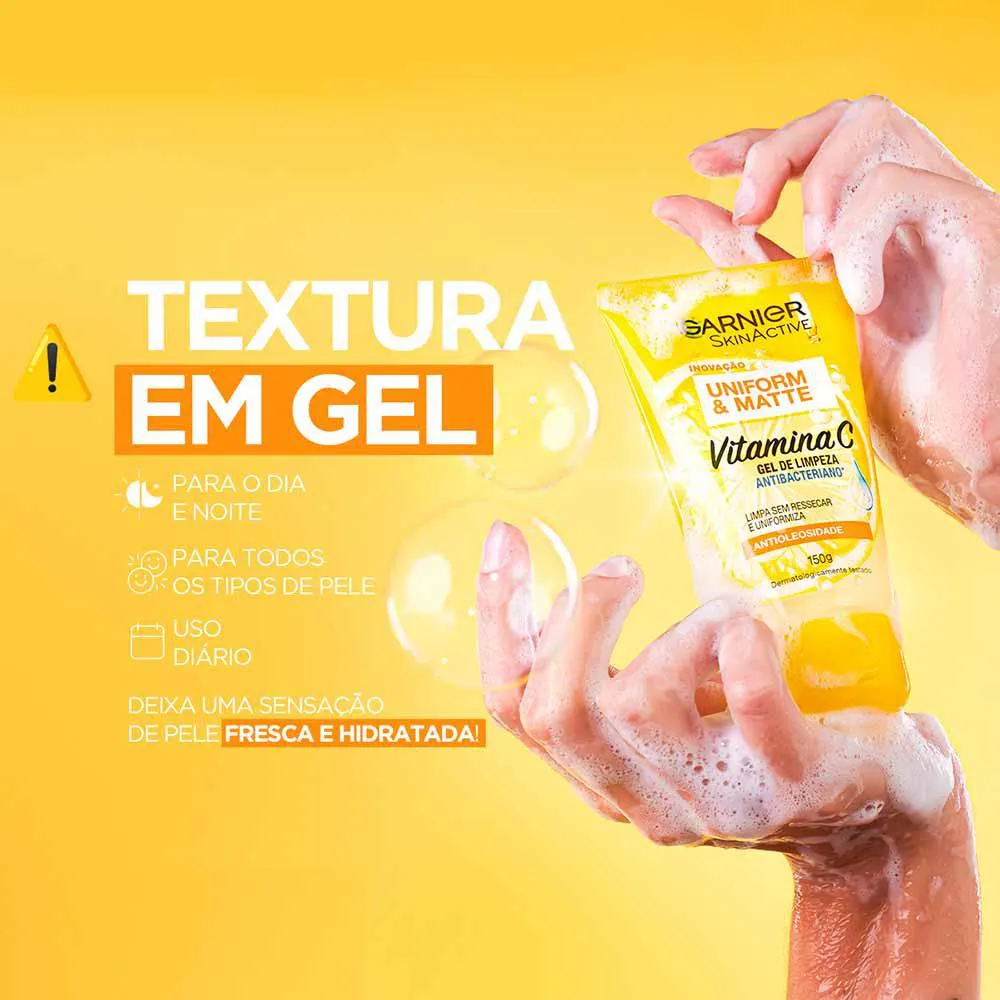 Gel de Limpeza Facial Antiacne, com vitamina c, Limpa e Controla a Oleosidade da Pele, Garnier Uniform & Matte