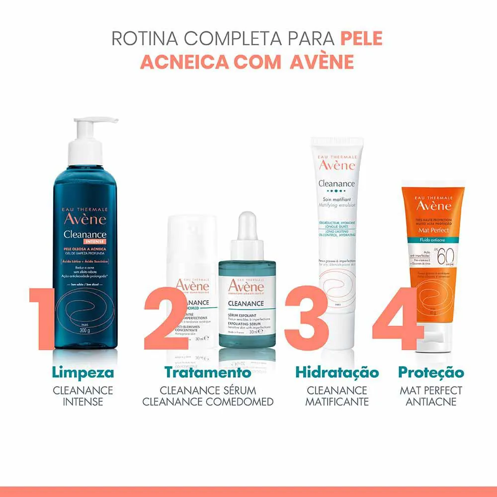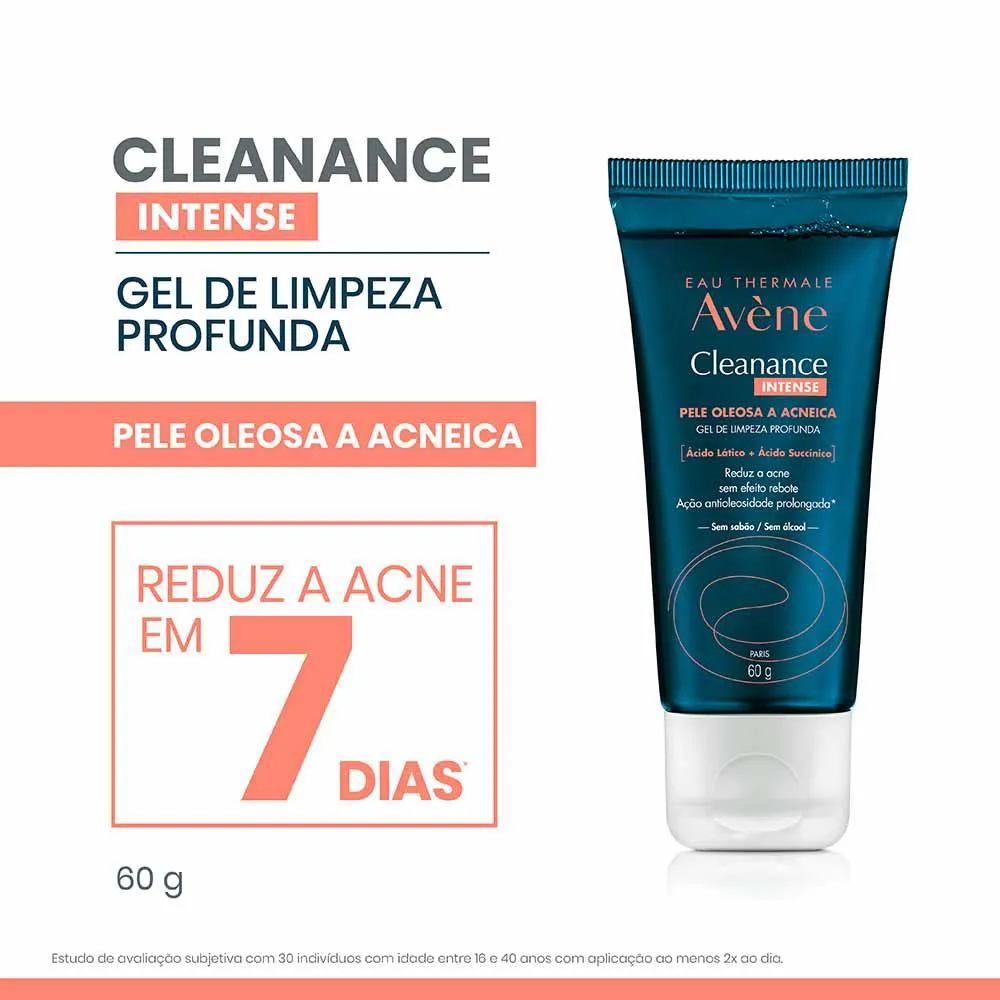Avéne Gel de Limpeza Facial Cleanance Intense: Cleanance Intense é um gel de limpeza diária profunda indicado para pele oleosa ou com tendência a acne. Possui uma combinação exclusiva de ativos inovadores que reduzem a acne, evitam o efeito rebote e garantem ação antioleosidade prolongada.
