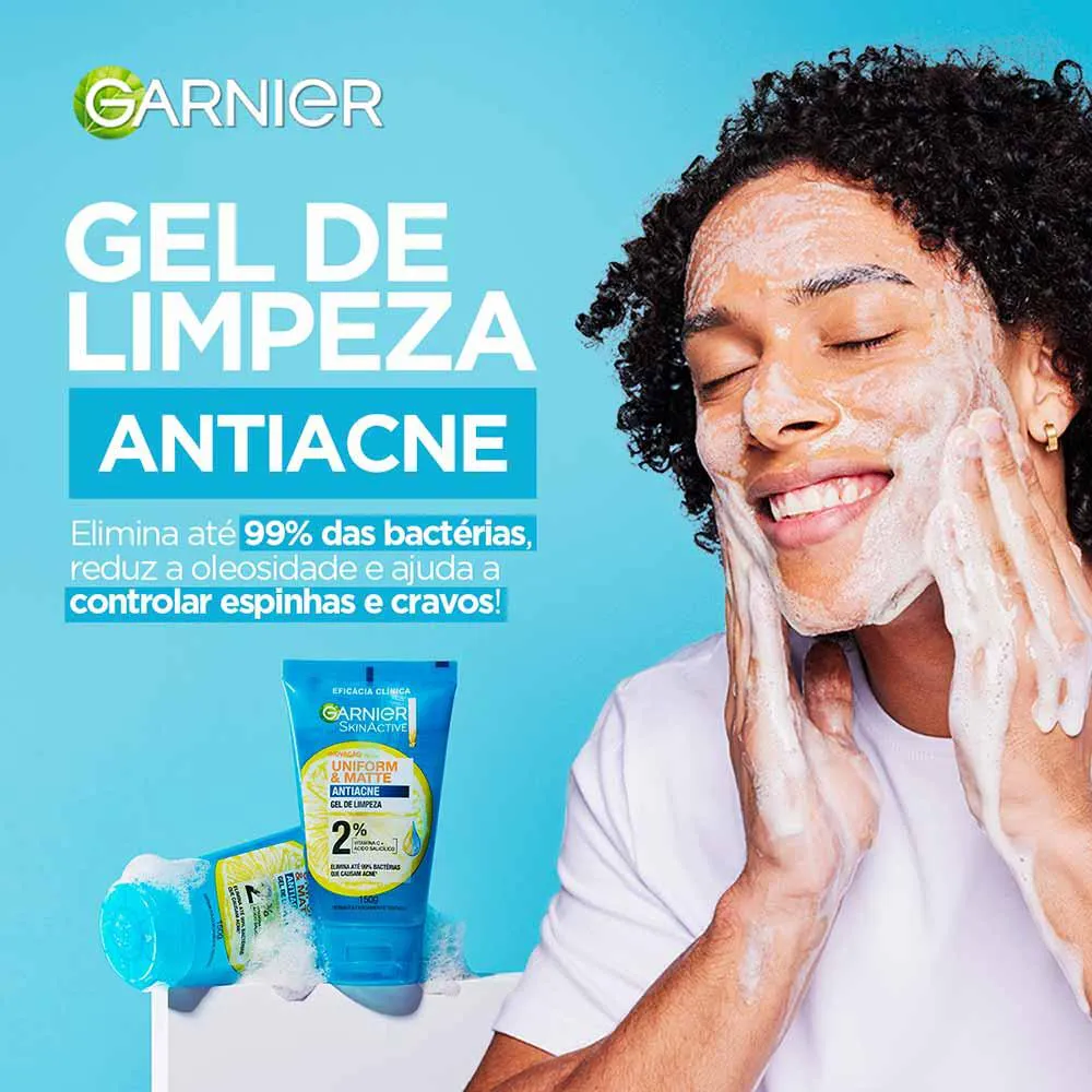Gel de Limpeza, Antiacne Controla Oleosidade, Reduz Cravos e Espinhas, Garnier Uniform & Matte