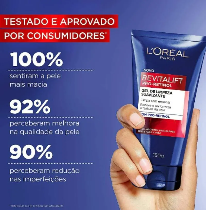 Desenvolvido pelos laboratórios de L'Oréal Paris para renovar a textura da pele, o Gel de Limpeza Suavizante Revitalift Pro-Retinol possui um alto poder de limpeza da pele, uniformizando a textura e eliminando impurezas, sem ressecar.