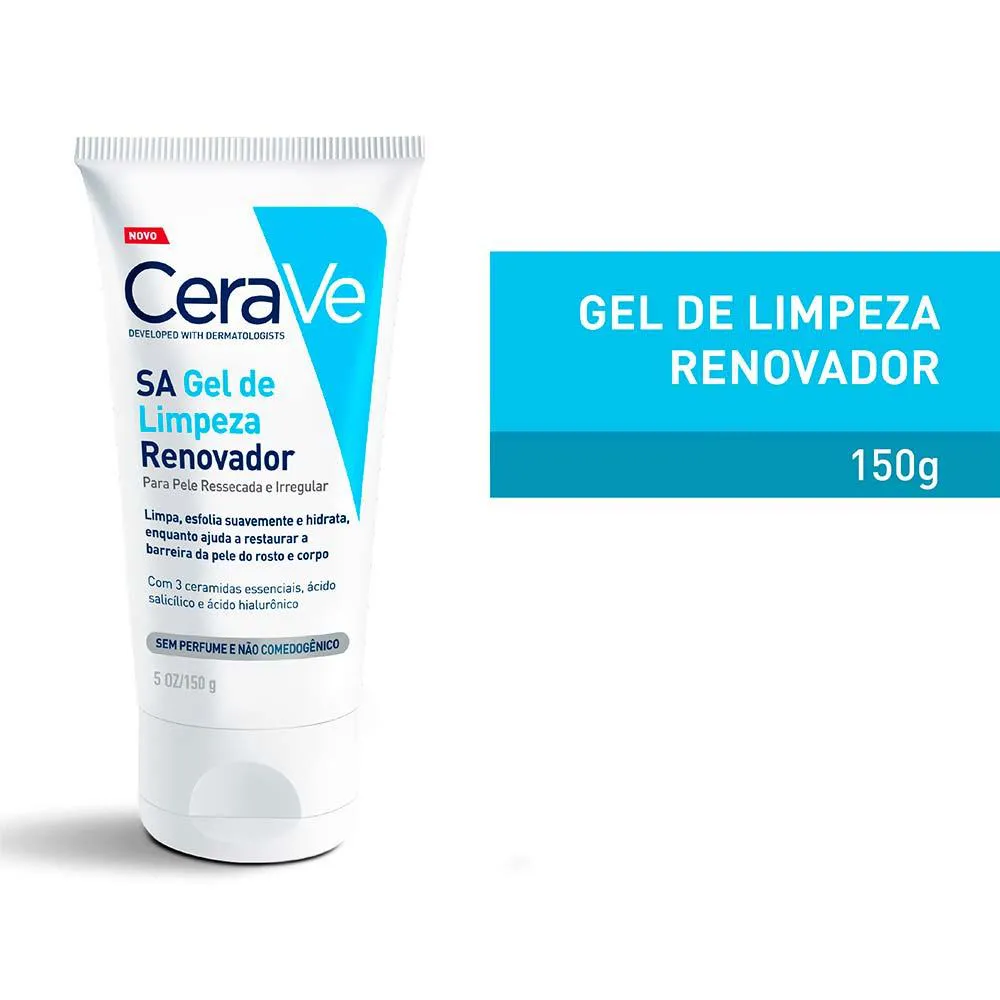 Com efeito esfoliante, Cerave SA Gel de Limpeza Renovador é um gel de limpeza suave para pele seca, àspera e irregular.