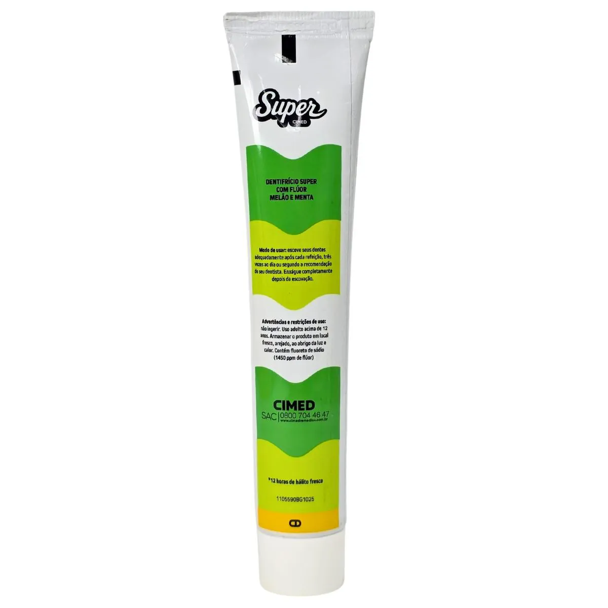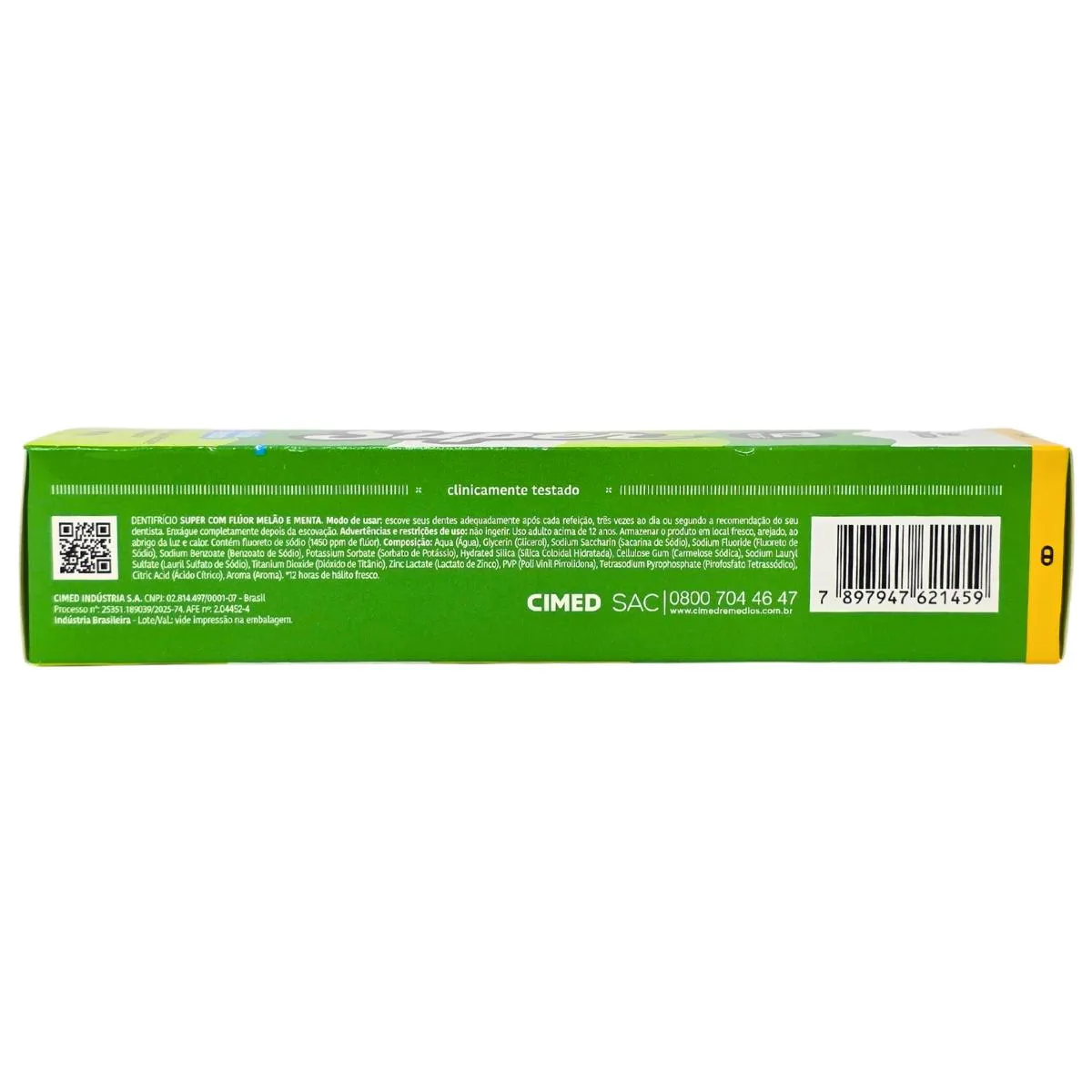 Finalidade: O Gel Dental Super 12 Horas Sabor Melão e Menta é um gel dental ideal para auxiliar na higiene diária dos dentes, proporcionando até 12 horas de proteção. Sua fórmula possui flúor, oferecendo ação anticárie e anti placas, contribuindo para saúde bucal contínua e sensação prolongada de limpeza.