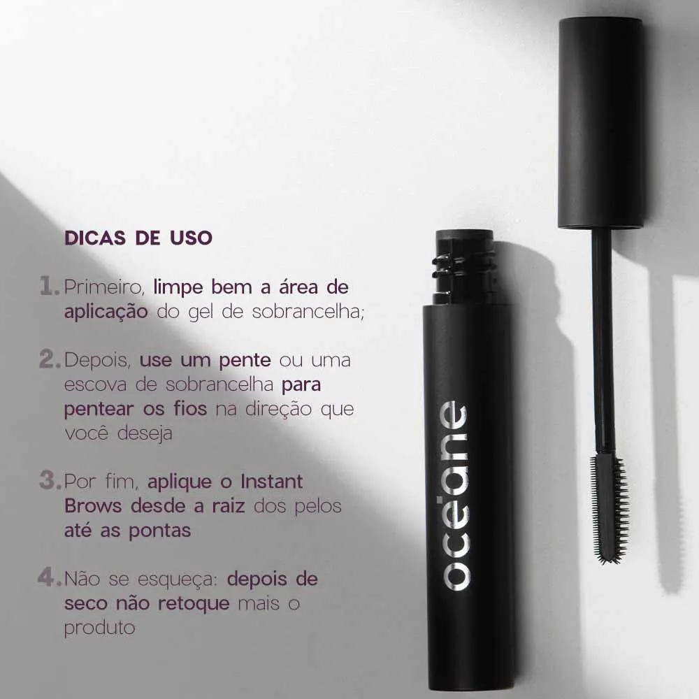 Dica: devido à sua textura em gel, após secar, o Instant Brows forma uma leve película sobre as sobrancelhas. Para removê-la, basta retirar o produto delicadamente com um demaquilante. Não esfregue as sobrancelhas com força.